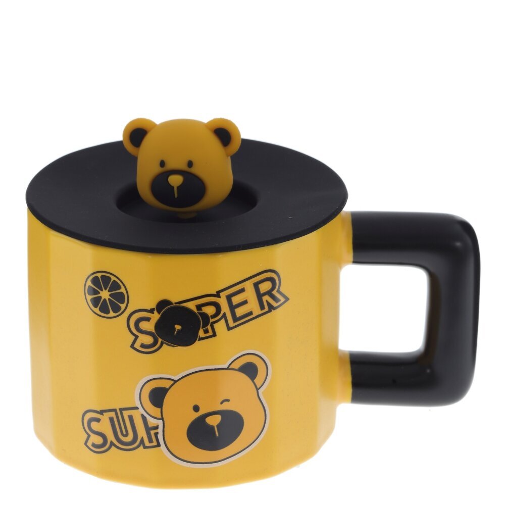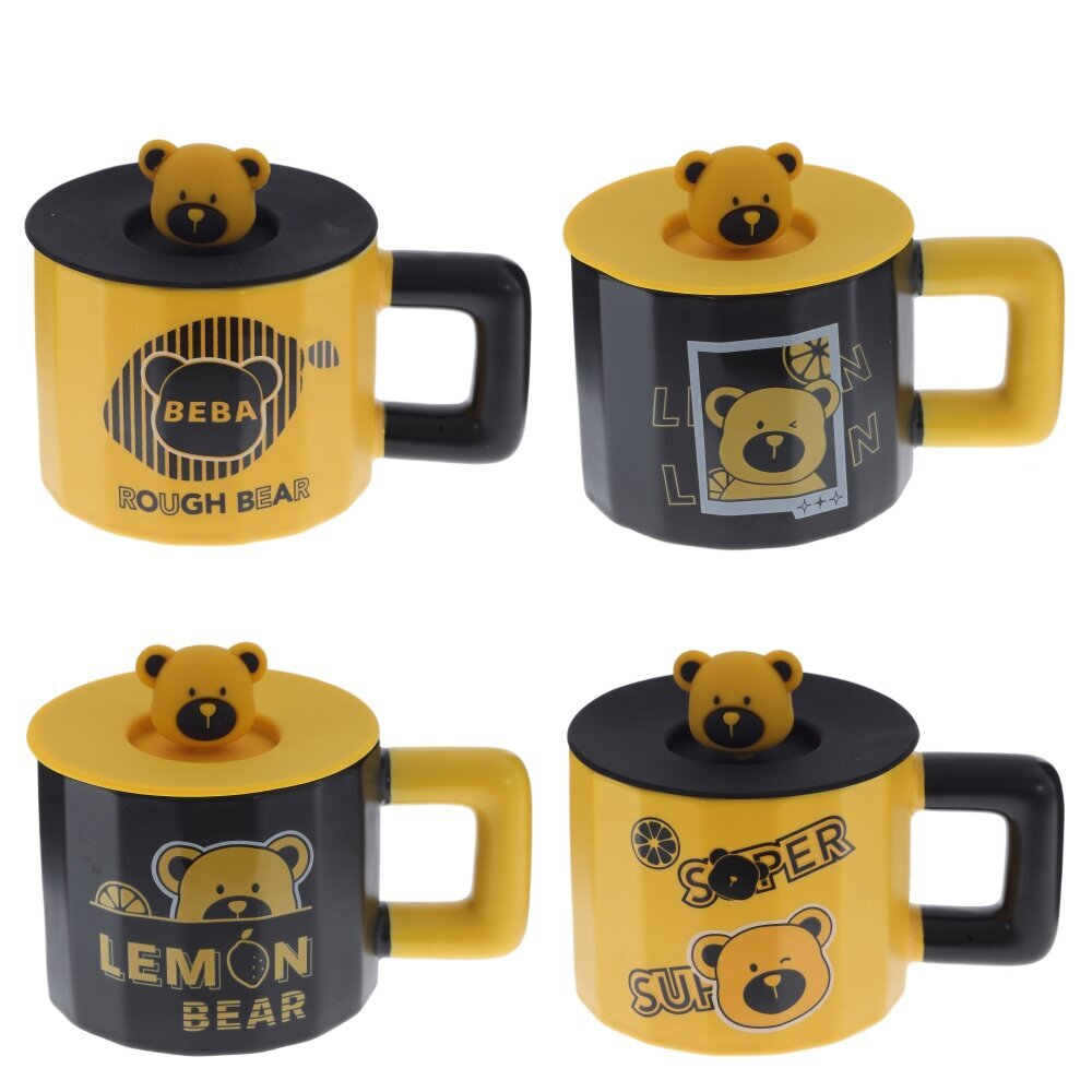 Стильная кружка с крышкой объёмом 470 мл для чая, кофе и какао. Корпус выполнен из прочного фарфора глянцевого чёрного цвета, удобная квадратная ручка и крышка — из безопасных полимерных материалов. Плотно прилегающая крышка с забавной фигуркой медвежонка защищает напиток от пыли, помогает дольше сохранять тепло и предотвращает случайные брызги при переноске. На боковой поверхности — милый принт с медведем и дольками лимона, который поднимает настроение и выделяет кружку на рабочем столе. Широкое основание придаёт устойчивость, ободок приятен к губам. Крышка легко снимается, её удобно мыть вручную. Отличный выбор для дома, офиса или в подарок детям и взрослым, ценящим необычные и практичные вещи. Представлено в четырех вариантах.