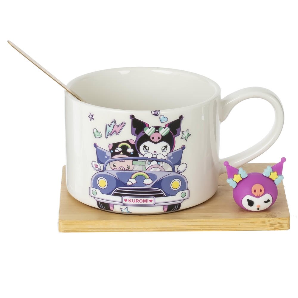 Стильная кружка с ложкой на подставке объёмом 250 мл – яркий акцент на вашем рабочем столе или кухне. Белая фарфоровая кружка украшена красочным принтом с забавными персонажами в машине, который поднимает настроение при каждом глотке. Удобная деревянная подставка защищает поверхность стола от следов и может использоваться как мини?поднос для печенья или сладостей. Металлическая ложка идеально подходит для размешивания чая, кофе или какао. Фигурный декор из полимерных материалов дополняет дизайн и делает набор отличным подарком для детей, подростков и всех любителей милых аксессуаров.