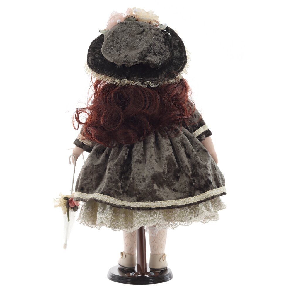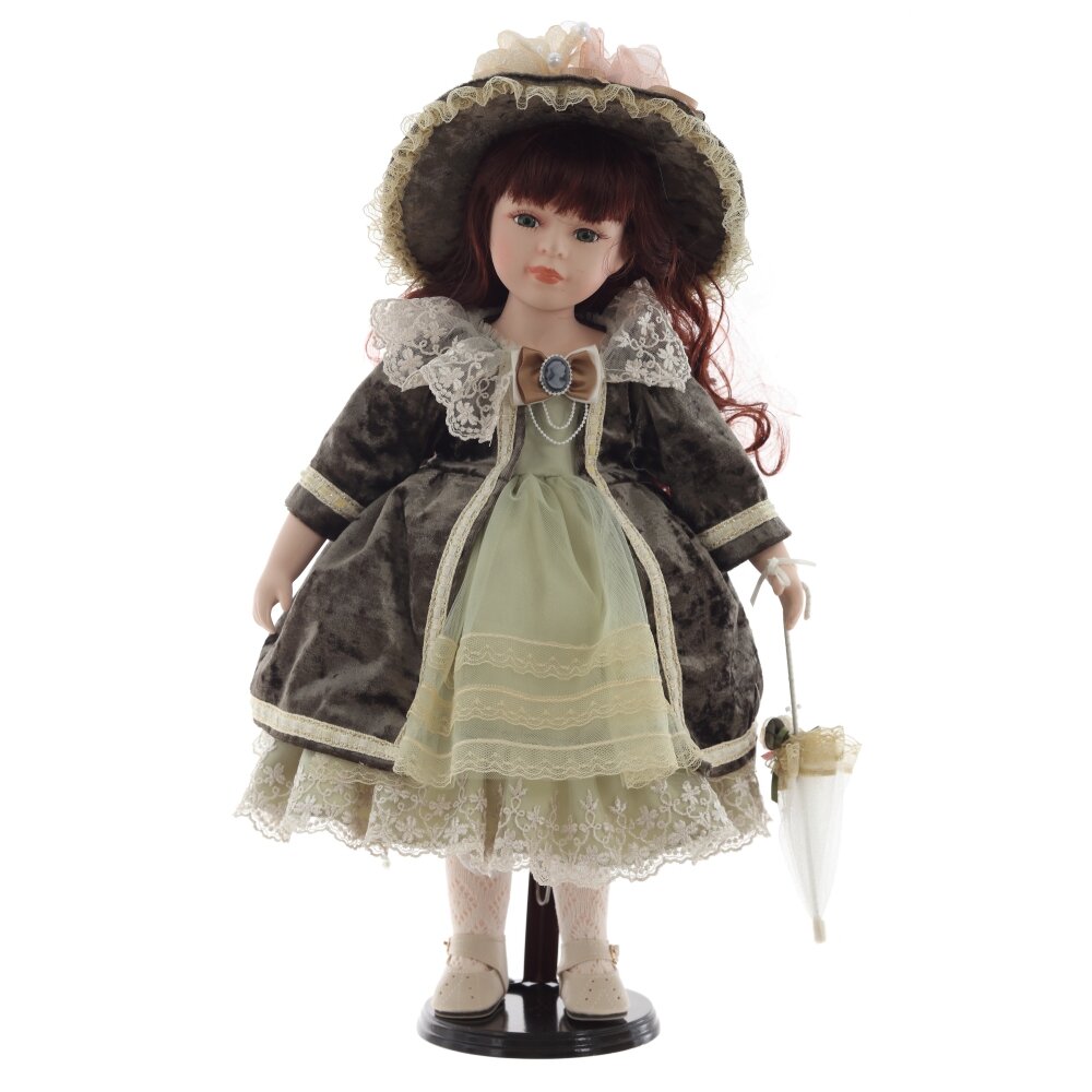 Кукла "Ирина" – это великолепное изделие, созданное с вниманием к деталям. Она одета в элегантное винтажное платье из текстильных материалов с кружевными акцентами и украшена шляпкой и зонтом. Фарфоровое лицо куклы раскрашено вручную, что придаёт ей особую утонченность и реалистичность. Деревянная подставка, на которой стоит кукла, добавляет ей устойчивости и завершает образ. Кукла станет чудесным подарком для девочки, а также для коллекционеров кукол. Она украсит любой интерьер и подарит своим обладателям тепло и душевную радость.