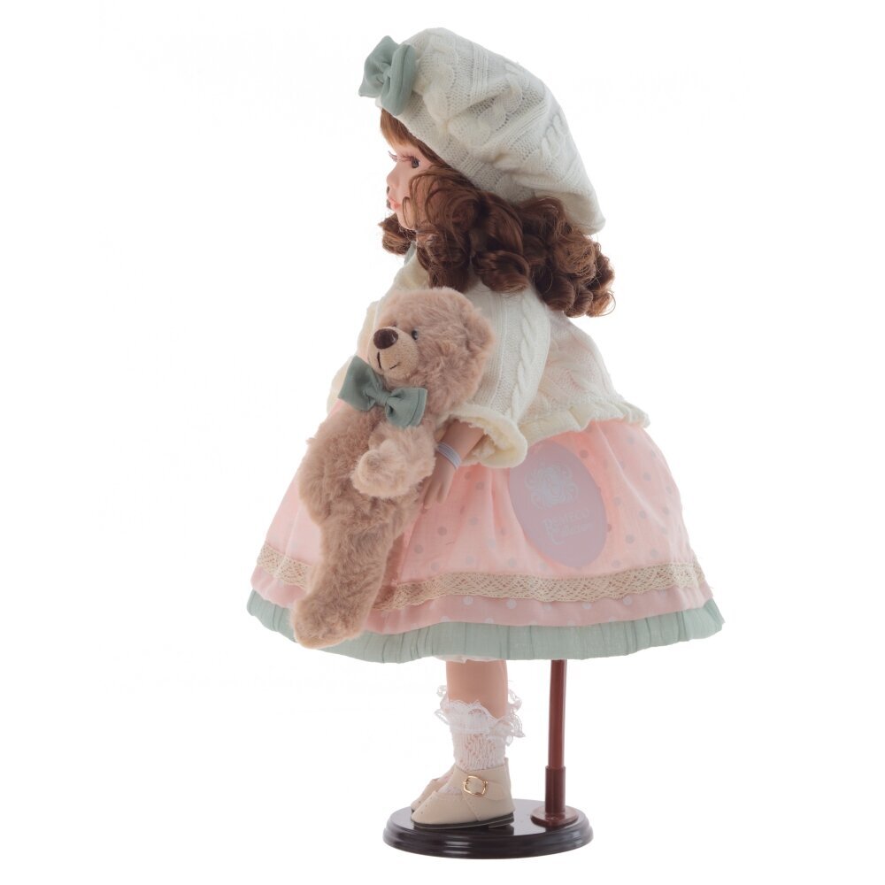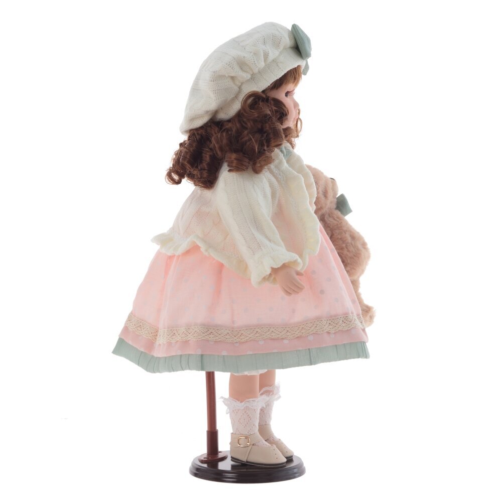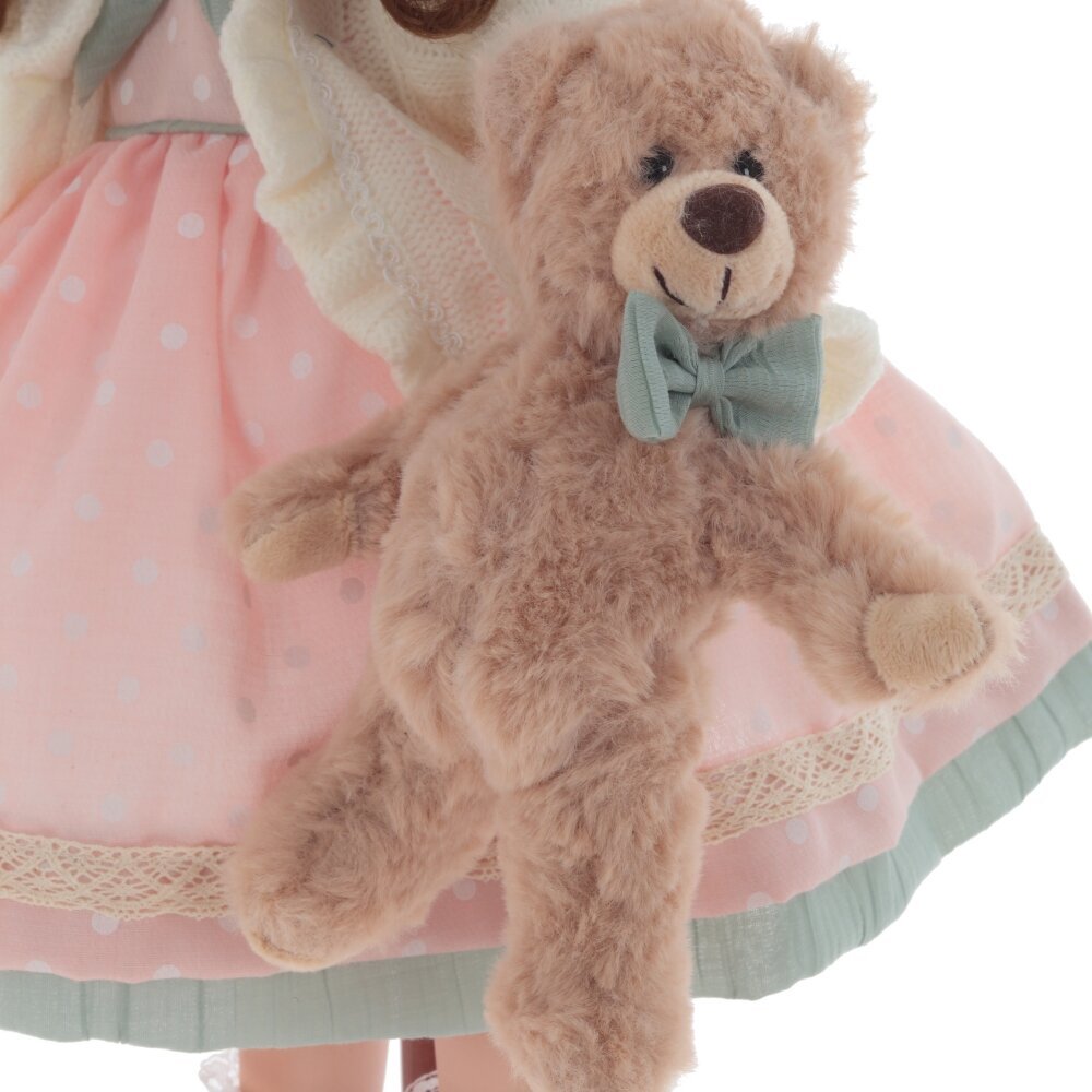 Кукла, созданная с любовью и вниманием к деталям. Она очаровывает своим нежным взглядом, милой улыбкой и трогательной простотой. Платье, украшенное кружевом и тесьмой, подчёркивает женственность и изящество куклы. А мягкий плюшевый медвежонок, которого она бережно держит в руке, добавляет образу трогательности и уюта. Деревянная подставка, на которой стоит кукла, добавляет ей устойчивости и завершает образ. Кукла станет чудесным подарком для девочки, а также для коллекционеров кукол. Она украсит любой интерьер и подарит своим обладателям тепло и душевную радость.