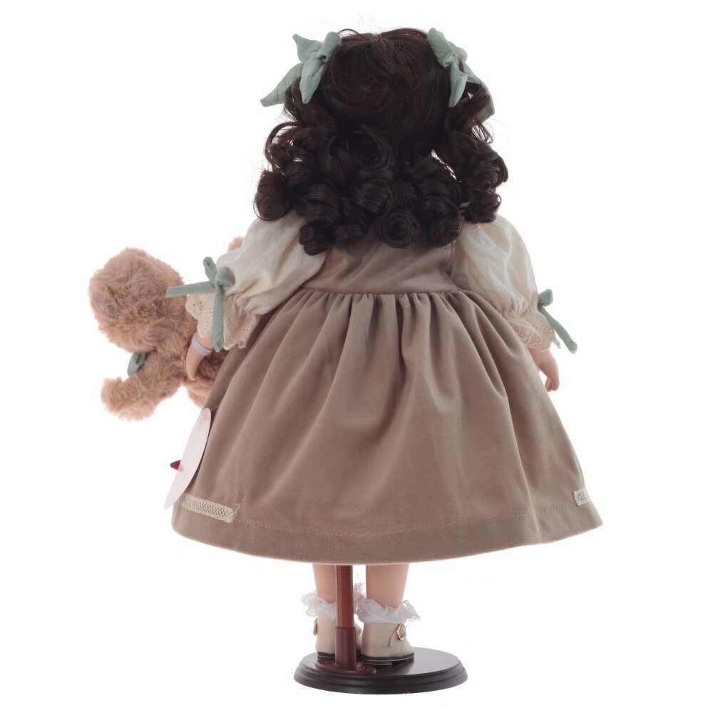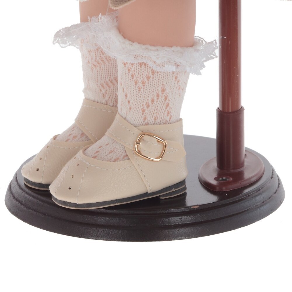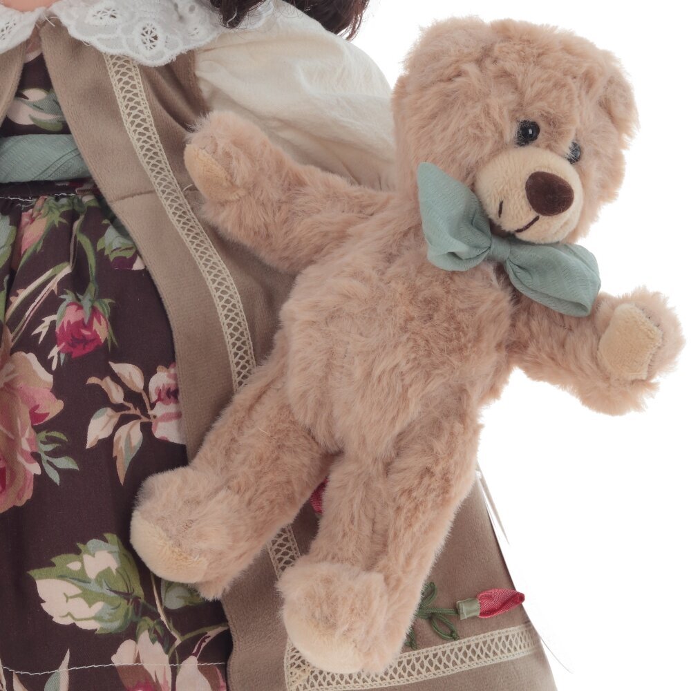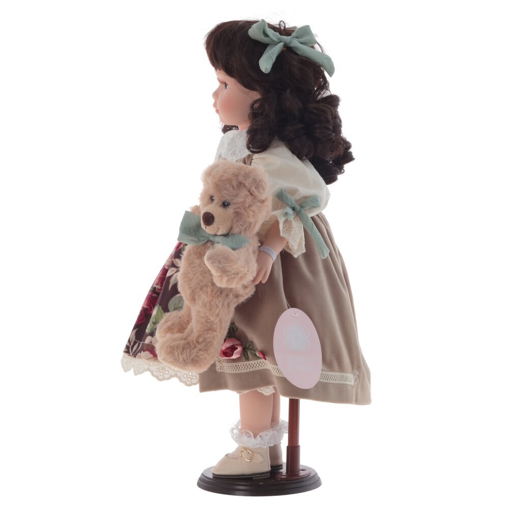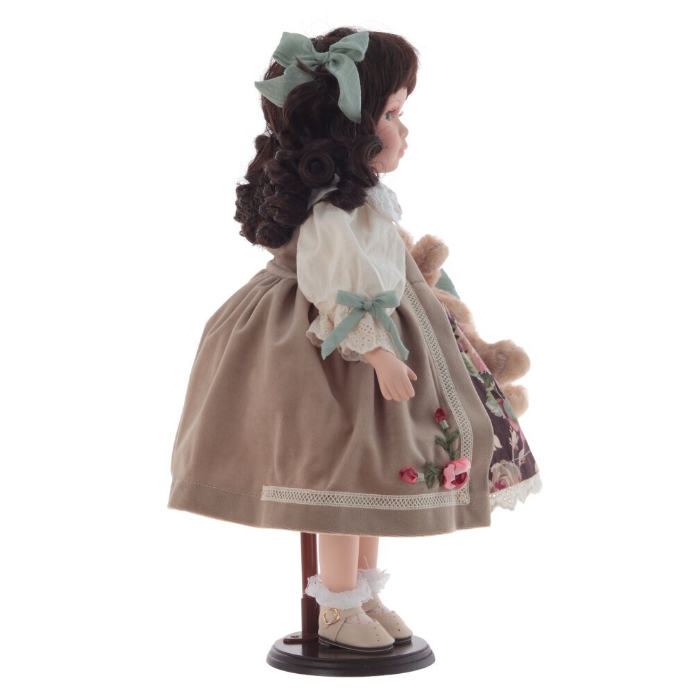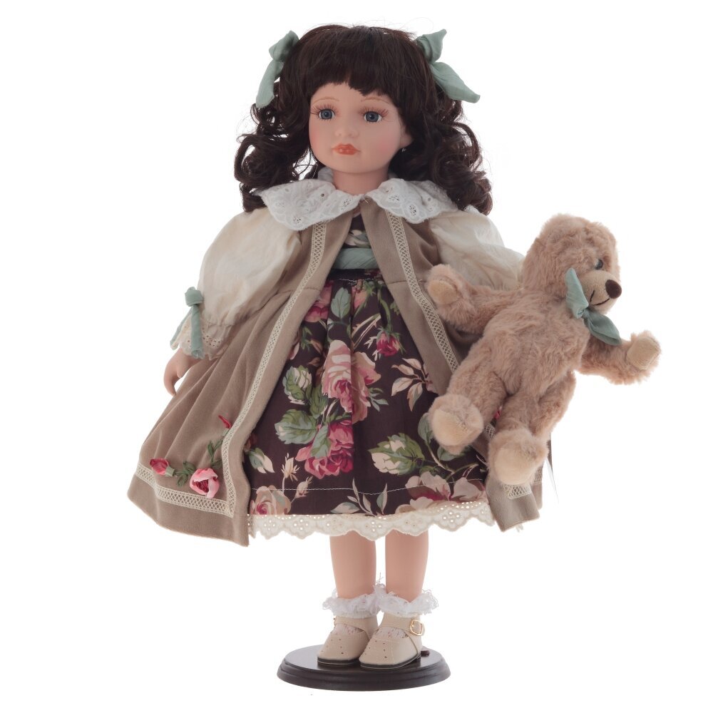 Кукла, созданная с любовью и вниманием к деталям. Она очаровывает своим нежным взглядом, милой улыбкой и трогательной простотой. Платье, украшенное кружевом и цветочным принтом, подчёркивает женственность и изящество куклы. А мягкий плюшевый медвежонок, которого она бережно держит в руке, добавляет образу трогательности и уюта. Деревянная подставка, на которой стоит кукла, добавляет ей устойчивости и завершает образ. Кукла станет чудесным подарком для девочки, а также для коллекционеров кукол. Она украсит любой интерьер и подарит своим обладателям тепло и душевную радость.