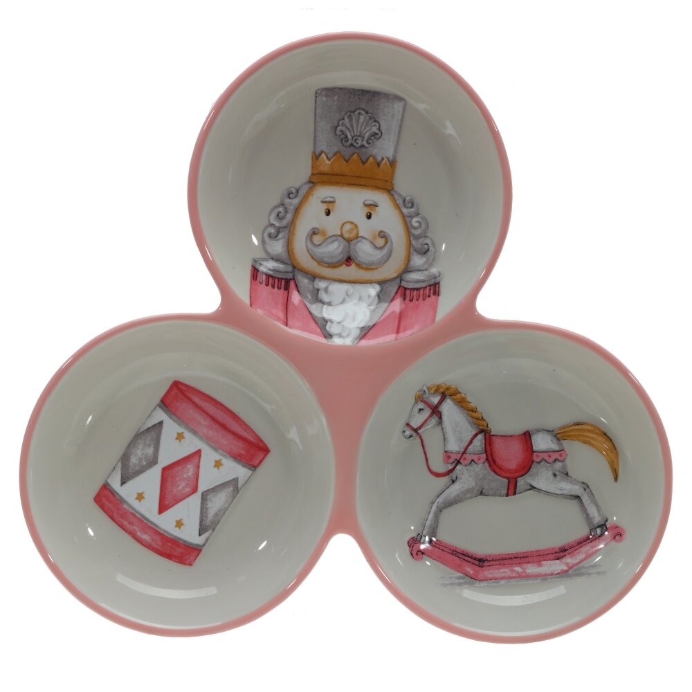 Керамическая менажница с изображением лошадки-качалки — это не только удобная посуда для подачи закусок, десертов, орехов или фруктов, но и стильный элемент сервировки, который добавит уюта и особого настроения. Очаровательный рисунок с лошадкой-качалкой придаёт изделию тёплый, ностальгический характер, напоминая о детстве и семейных традициях. Менажница может использоваться как на повседневном столе, так и во время праздничных приёмов, особенно на Новый год, Рождество или детские праздники. Керамика высокого качества обеспечивает прочность, устойчивость к перепадам температур и лёгкость в уходе. Менажница станет не только функциональной частью сервировки, но и прекрасным подарком для ценителей красивой посуды и уютного интерьера.