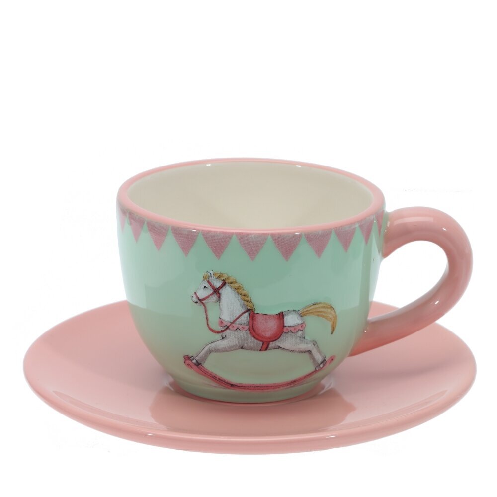 Керамический набор, состоящий из чашки и блюдца с изображением лошадки-качалки, — это утончённое сочетание уюта и стиля. Теплый, ностальгический рисунок с лошадкой-качалкой придаёт набору особое настроение — он вызывает ассоциации с детством, зимними праздниками и семейным теплом. Чашка удобной формы идеально подходит для утреннего чая, кофе или какао, а блюдце делает подачу напитка более элегантной и аккуратной. Такой комплект станет украшением сервировки, создавая атмосферу заботы и комфорта. Керамика высокого качества гарантирует прочность и долговечность при правильном уходе. Набор подойдёт для повседневного использования, уютных чаепитий, а также как душевный подарок на любой праздник — будь то Новый год, день рождения, 8 марта или просто тёплый знак внимания.