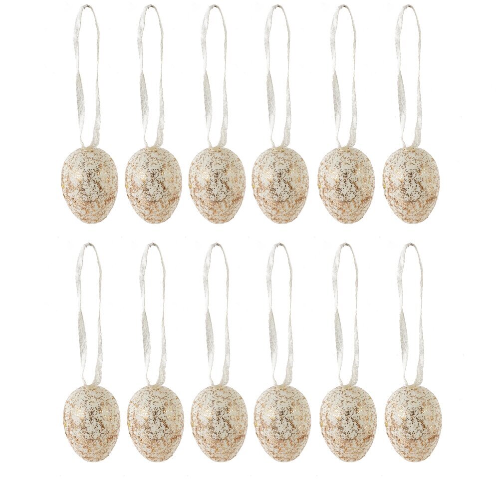 Набор пасхальных подвесных украшений «Яйцо» – это 12 изящных декоративных яиц из полимерных материалов. Лёгкие, белые, с мягким краплением блёсток, они создают ощущение нежности и весеннего праздника. Каждое яйцо снабжено аккуратной лентой-петелькой для удобного подвешивания на пасхальное деревце, веточки, гирлянды, венки или дверные ручки. Такой набор идеально подойдёт для оформления дома, офиса, витрины магазина, создания подарочных композиций и украшения пасхальной корзины. Декор устойчив к выцветанию и механическим повреждениям, долго сохраняет аккуратный вид и может использоваться из года в год, дополняя любую интерьерную стилистику – от классической до современного минимализма.