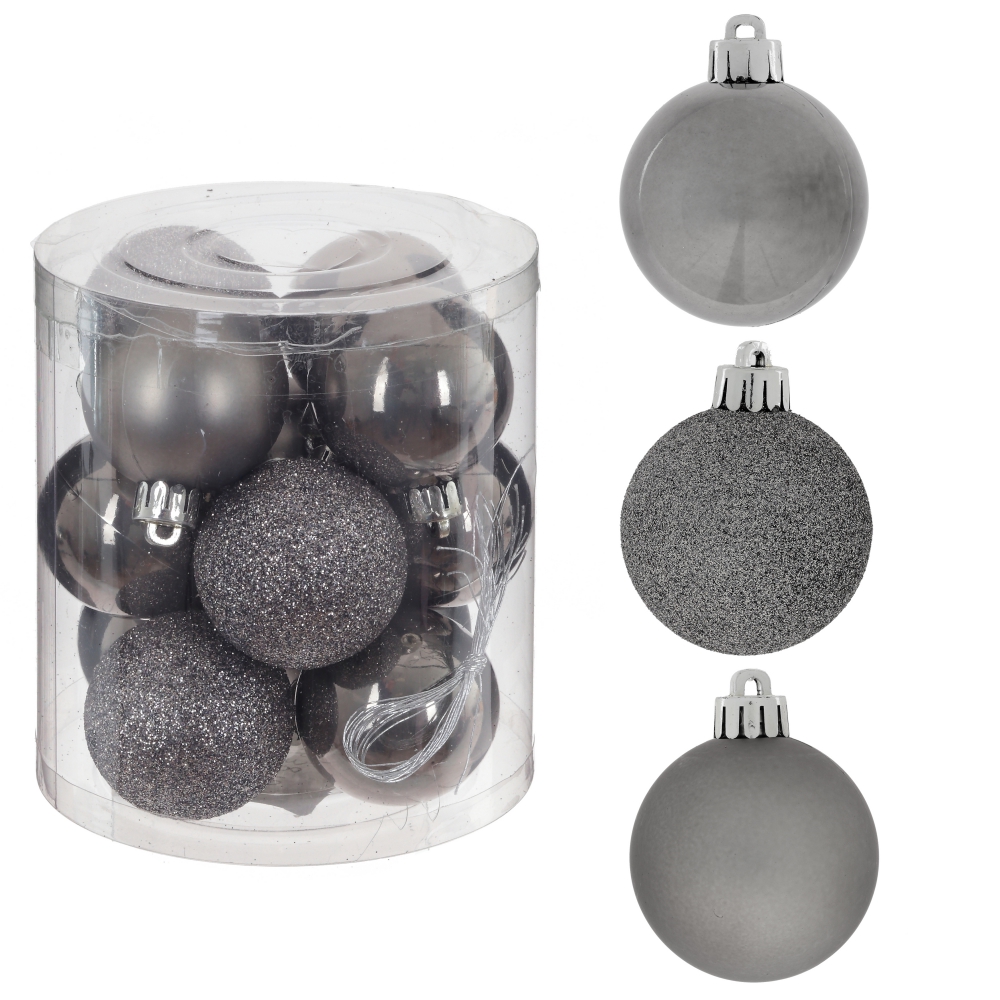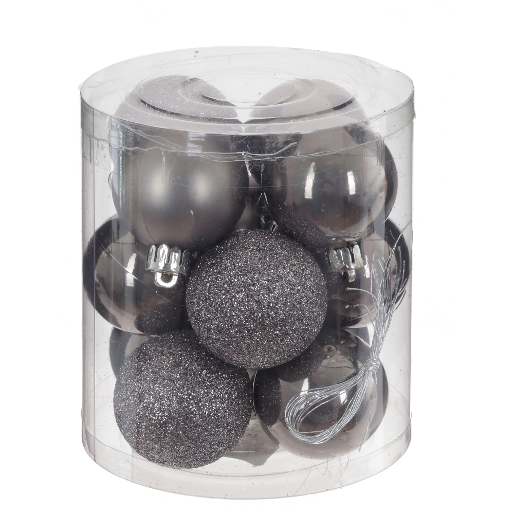 Набор из 12-ти елочных шаров, диаметром 4 см, выполнен в единой цветовой гамме. В составе набора - пластиковые шары разной фактуры - глянцевые, матовые и с глиттером. Прекрасно смотрятся в убранстве новогодней ели. Поставляются в прозрачном пластиковом контейнере.
