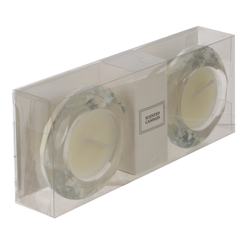 Набор из 2-х свечей в стеклянных подсвечниках, D 4,5 см. Компактные круглые держатели из прозрачного стекла с легкой гранкой подчеркивают мягкое сияние белого парафина, создавая уют и теплоту. Нейтральный цвет легко сочетается с любым интерьером — от современного до классического. Устойчивое тяжелое стекло надежно стоит на ровной поверхности и помогает аккуратно собирать расплавленный воск. Свечи идеально подходят для романтического ужина, расслабляющей ванны, сервировки праздничного стола или создания атмосферного декора гостиной и спальни. Стильный, лаконичный аксессуар и приятный вариант небольшого подарка для дома.