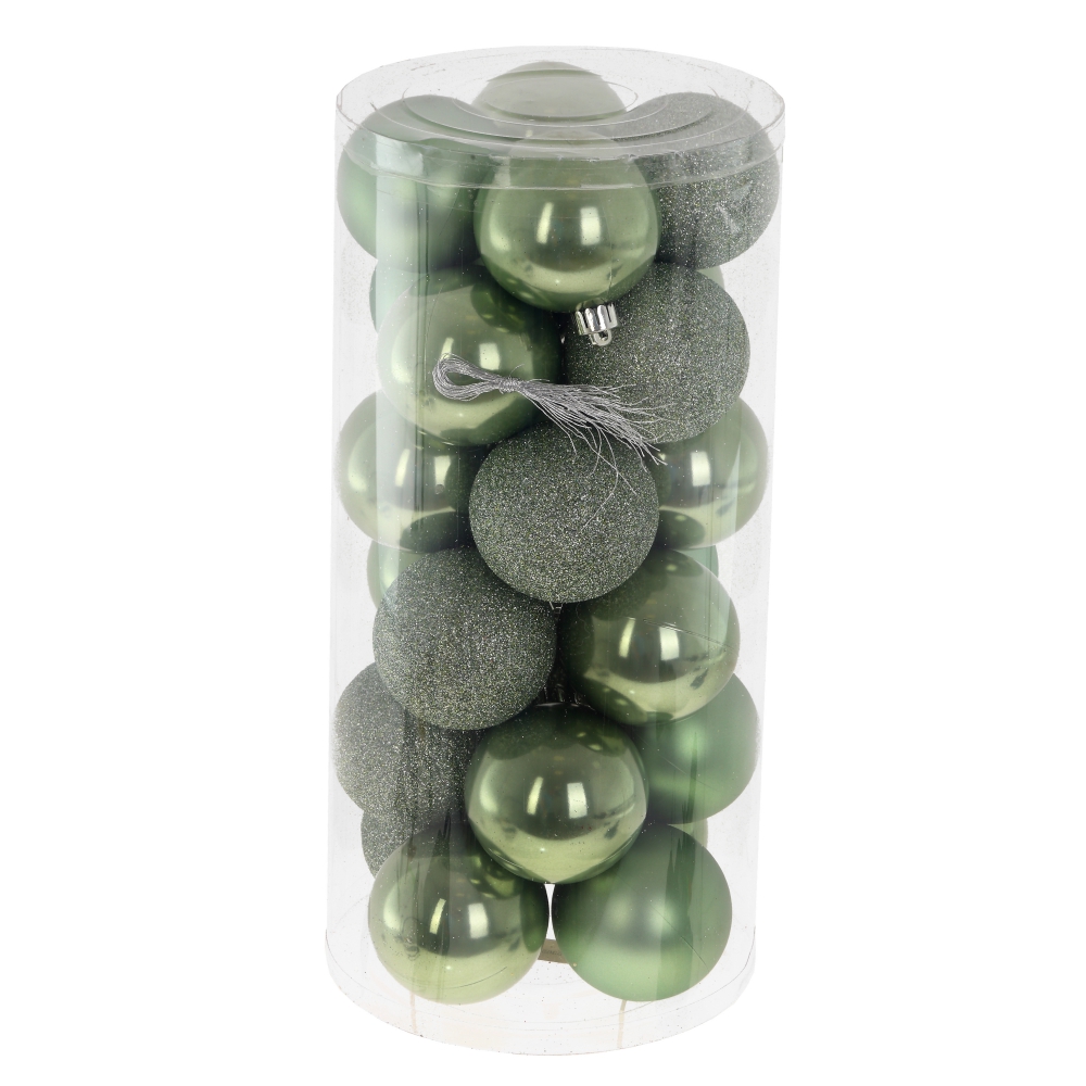 Набор из двадцати четырех елочных шаров, диаметром 6 см, выполнен в единой цветовой гамме. В составе набора - пластиковые шары разной фактуры - глянцевые, матовые и с глиттером. Прекрасно смотрятся в убранстве новогодней ели. Поставляются в прозрачной пластиковой упаковке.