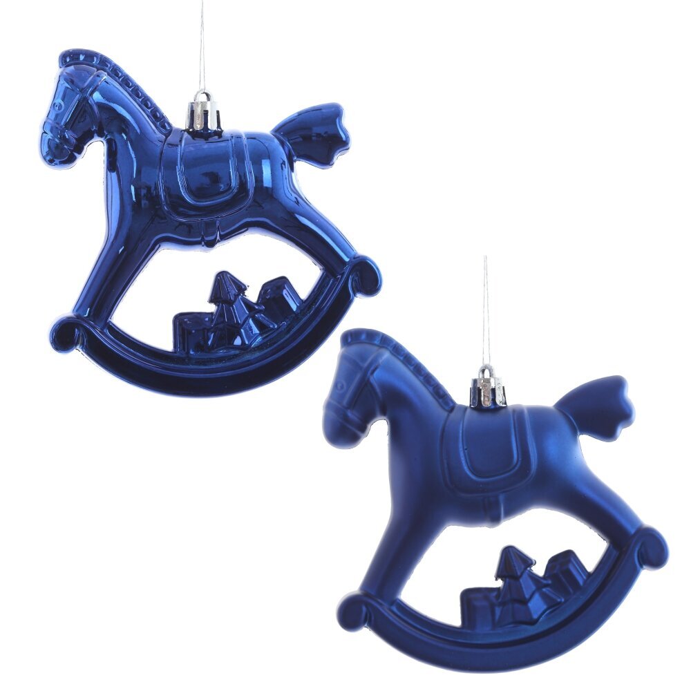 Набор из 2 новогодних украшений в виде "Лошадки". Идеально подходит для создания праздничной атмосферы в 2026 году, посвященного этой тематике. Изготовлено из прочных полимерных материалов, окрашено в яркий синий цвет (матовый и глянцевый). Отличный выбор для новогодних декораций, оформления интерьера и оригинальных подарков. Создайте волшебное настроение и добавьте очарования вашей новогодней вечеринки. Украшения станут прекрасным дополнением к праздничному декору, подчеркнут стиль и создадут атмосферу волшебства. Они могут использоваться для украшения елки или для создания тематических композиций.