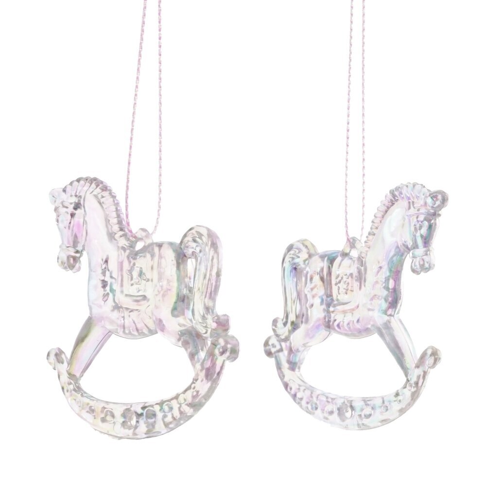 Новогоднее украшение "Лошадка" — это изящный набор из двух прозрачных фигурок лошадок-качалок, изготовленных из полиакрила. Каждая лошадка имеет перламутровый перелив, создающий эффект ледяного блеска. Эти очаровательные украшения прекрасно дополнят небольшую елочку или украсят окно, добавляя атмосферу праздника и волшебства в ваш дом. Мягкий свет, проходящий сквозь прозрачные украшения, создаст уютное и сказочное настроение в новогоднюю ночь.
