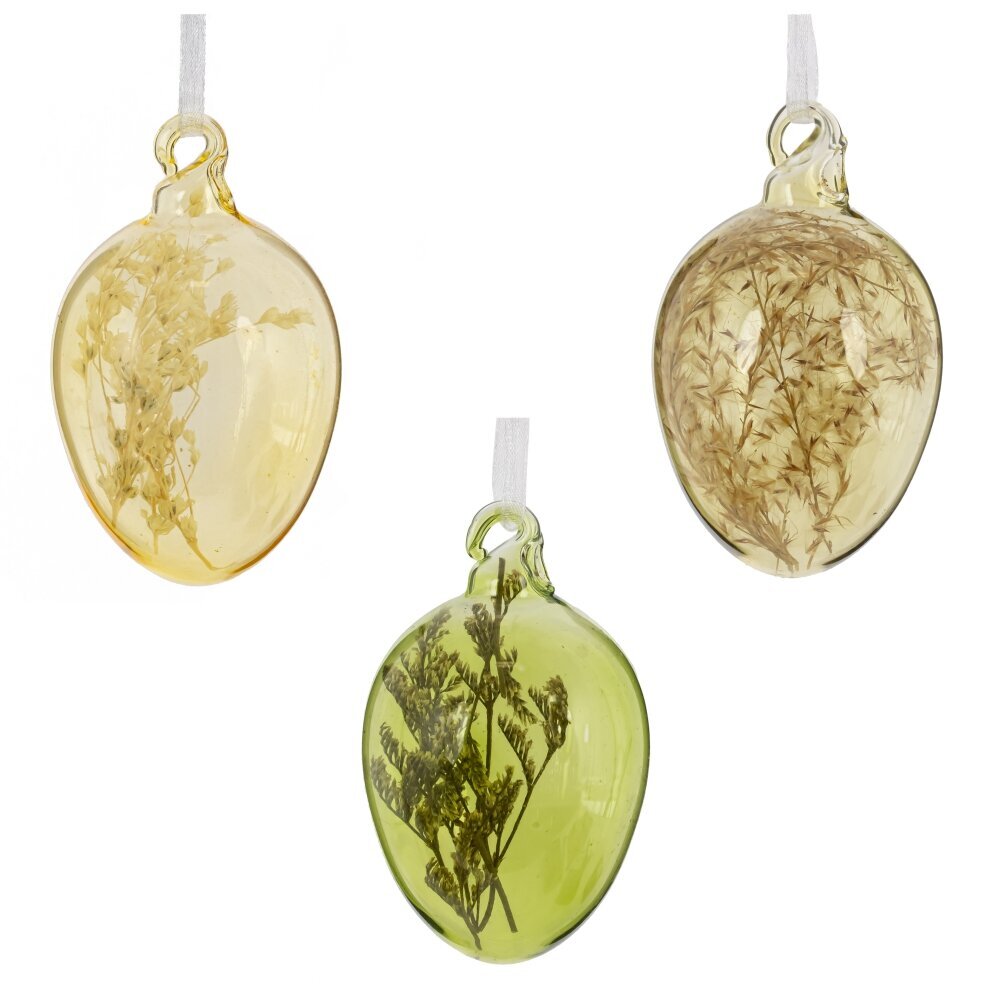 Набор из трёх декоративных подвесных изделий в форме пасхального яйца станет изысканным украшением для вашего интерьера. Эти нежные изделия изготовлены из прозрачного стекла и наполнены натуральными сухоцветами, создавая эффект лёгкости и природной гармонии. Каждое яйцо имеет уникальный дизайн с разными оттенками и композициями цветов, что делает их стильным элементом декора. Идеально подходят для украшения пасхального дерева, праздничного стола или создания весенней атмосферы в доме. Благодаря изящной ленте их можно легко повесить на ветки, люстру или любой другой декор. Этот набор станет отличным подарком для ценителей ручной работы и красивых аксессуаров.