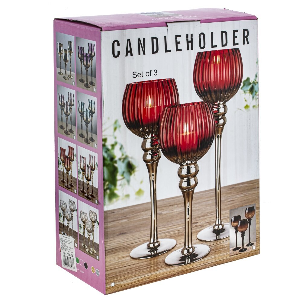 Набор из трех оригинальных стеклянных подсвечников на высоких ножках - прекрасный аксессуар для оформления праздничного стола. Он дополнит сервировку стола, подойдет для романтического вечера, или, просто украсит ваш дом. Размеры подсвечников: 13*13*40/35/30 см. Для свечи, диаметром 7 см.