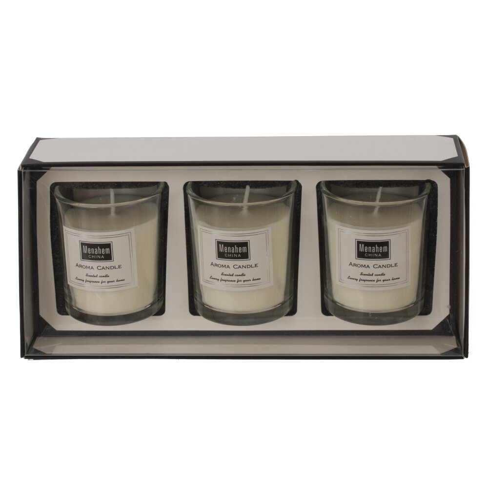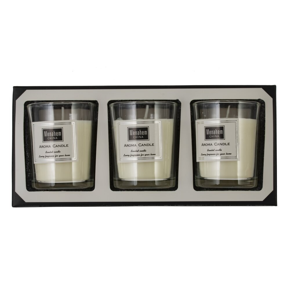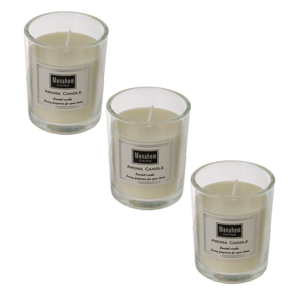 Набор из 3-х ароматических свечей в прозрачных стеклянных стаканчиках. Корпус выполнен из толстого гладкого стекла, внутри — качественный парафин мягкого молочного оттенка. Ровный фитиль обеспечивает стабильное, чистое горение и мягкий, ненавязчивый аромат. Минималистичный дизайн легко впишется в любой интерьер: спальню, гостиную, ванную или домашний спа-уголок. Свечи подойдут для расслабления, медитации, романтического ужина или в качестве подарка. Можно использовать по одной или расставить комплектом для более выразительной атмосферы. Материалы: парафин, стекло.