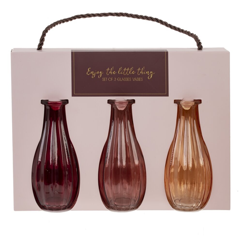 Этот набор из трёх стильных ваз объёмом 250 мл станет ярким акцентом в вашем интерьере. Изготовленные из качественного стекла, вазочки представлены в трёх привлекательных оттенках: нежном розовом, тёплом бежевом и насыщенном бордовом. Каждая ваза обладает уникальным характером, прекрасно сочетаясь друг с другом и создавая гармоничный ансамбль. Они отлично подходят для компактных букетов, как свежих, так и сухих, добавляя уют и стиль в любое пространство. Используйте эти вазочки для украшения стола, полки или каминной зоны — они привнесут атмосферу уюта и эстетики в ваш дом. Благодаря своей универсальности, набор можно использовать как для повседневных нужд, так и для особых случаев, привнося в ваш интерьер новые цвета. Размер горловины: 2*2 см.
