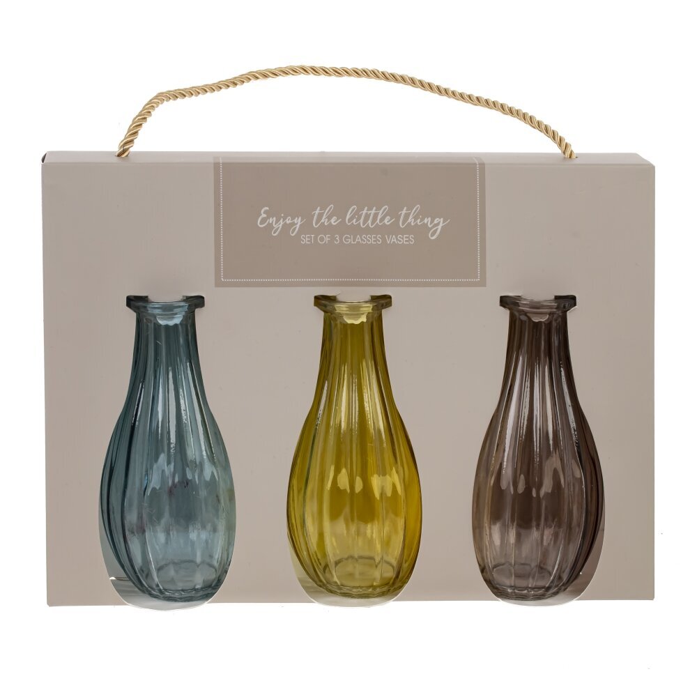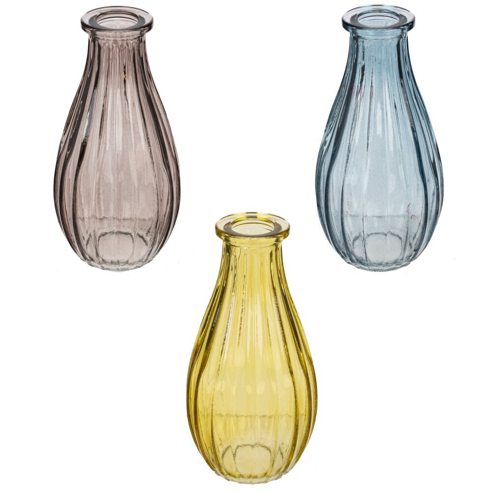 Этот набор из трёх изысканных ваз объёмом 250 мл станет великолепным дополнением вашего интерьера. Вазы выполнены из качественного стекла и представлены в трёх оттенках: коричневом, синем и солнечном жёлтом. Каждый цвет привносит свою ноту, создавая гармонию и яркость в любом пространстве. Отлично подходят как для свежих, так и для сухих букетов, эти вазочки могут стать великолепным акцентом на столе, полке или камине. Легкость и воздушность стекла позволяет вазам прекрасно выглядеть и в минималистичном, и в классическом интерьере. Они также могут быть использованы как самостоятельные декоративные элементы, придавая вашему пространству уникальность и стиль. Этот набор станет превосходным подарком для друзей и близких, любящих украшать свои дома необычными деталями. Размер горловины: 2*2 см.