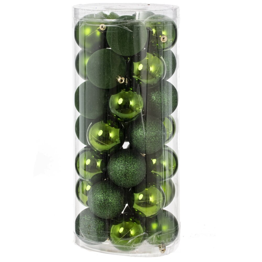 Набор из 35-ти елочных шаров, диаметром 6 см, выполнен в единой цветовой гамме. В составе набора - пластиковые шары разной фактуры - глянцевые, матовые и с глиттером. Прекрасно смотрятся в убранстве новогодней ели. Поставляются в прозрачной пластиковой упаковке.
