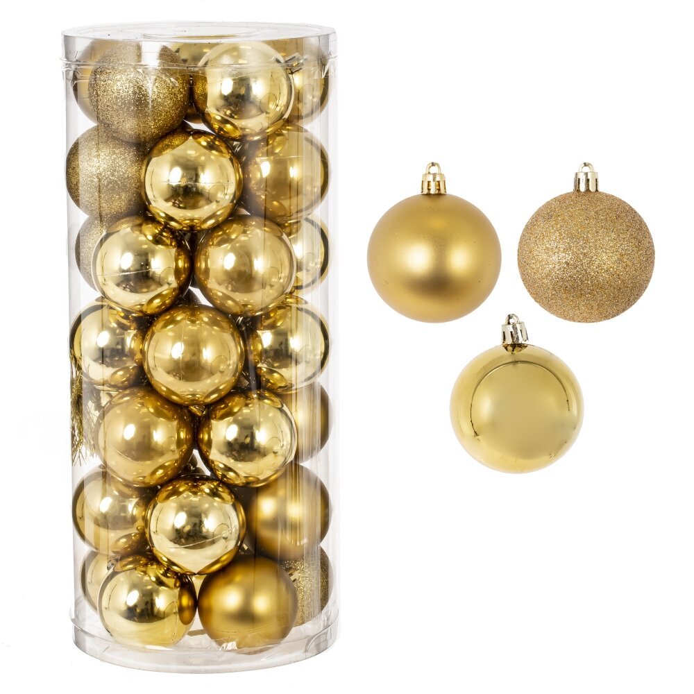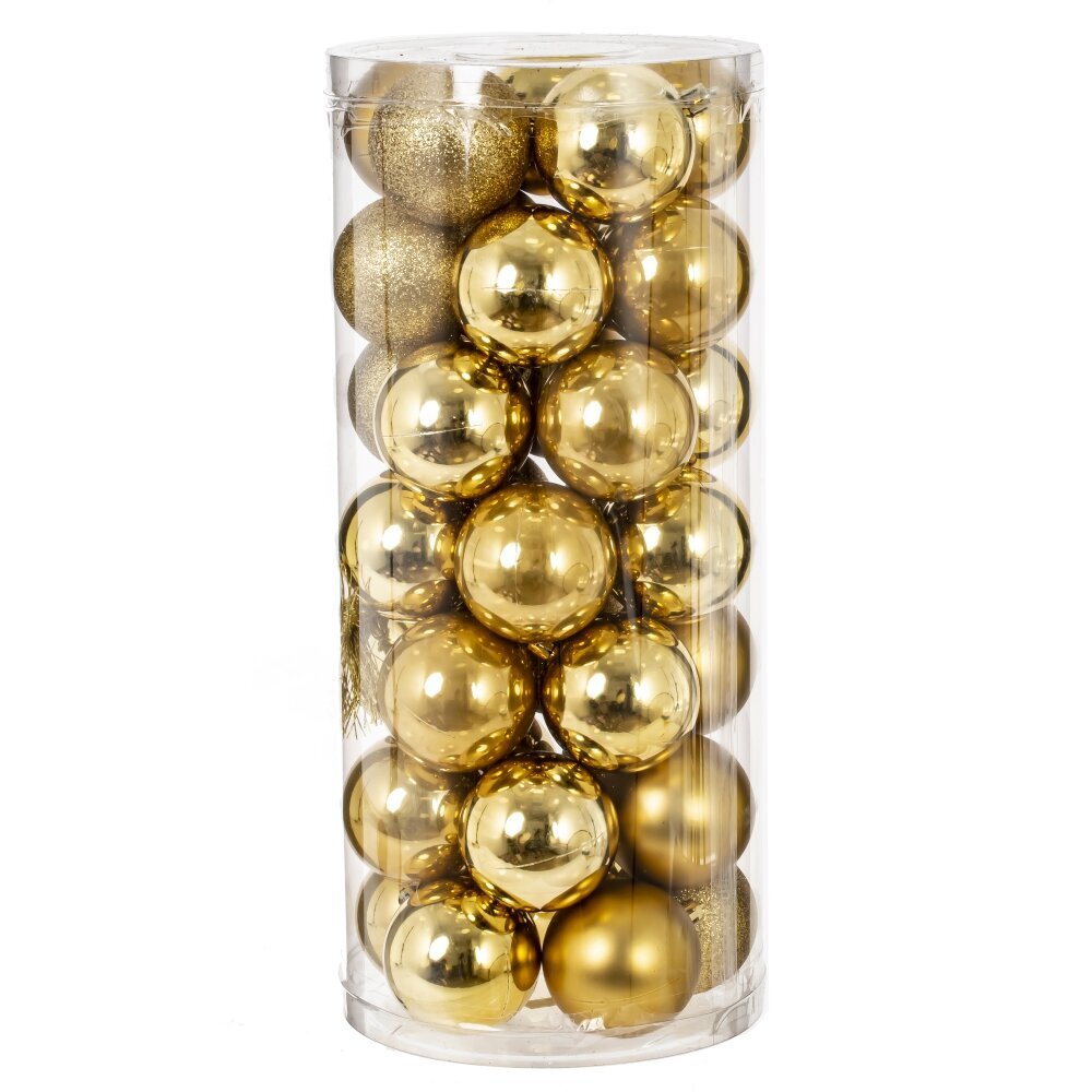 Набор из 35-ти елочных шаров, диаметром 6 см, выполнен в единой цветовой гамме. В составе набора - пластиковые шары разной фактуры - глянцевые, матовые и с глиттером. Прекрасно смотрятся в убранстве новогодней ели. Поставляются в прозрачной пластиковой упаковке.