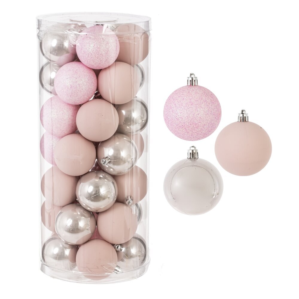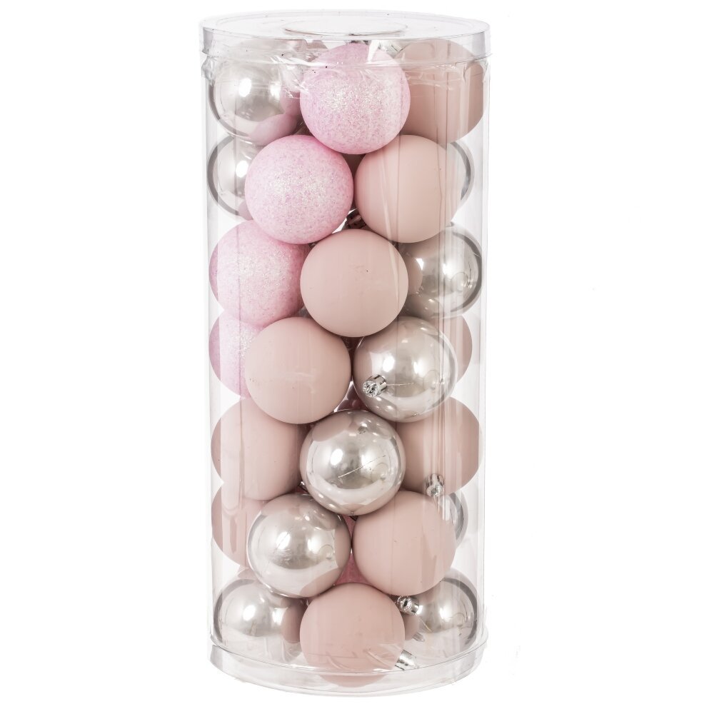 Набор из 35-ти елочных шаров, диаметром 6 см, выполнен в единой цветовой гамме. В составе набора - пластиковые шары разной фактуры - глянцевые, матовые и с глиттером. Прекрасно смотрятся в убранстве новогодней ели. Поставляются в прозрачной пластиковой упаковке.