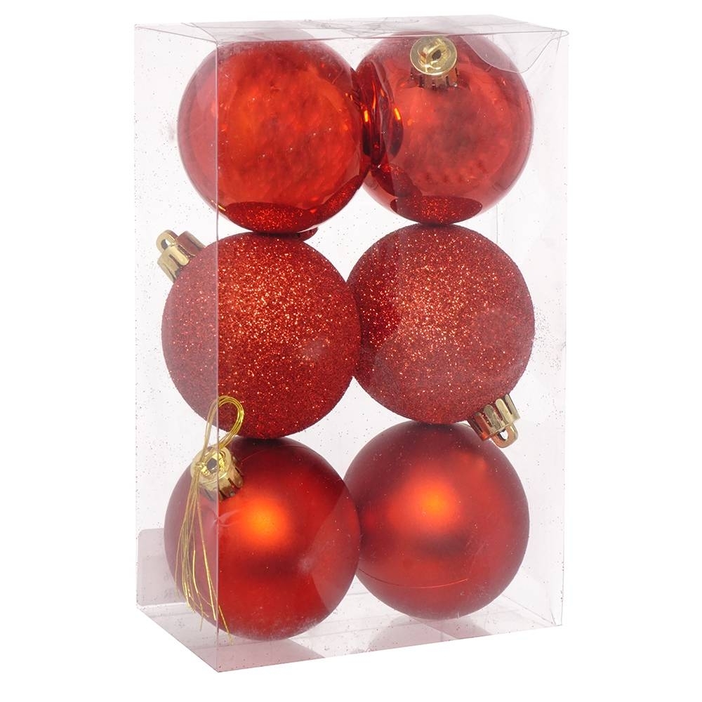 Набор из 6-ти елочных шаров, диаметром 6 см, выполнен в единой цветовой гамме. В составе набора - пластиковые шары разной фактуры - глянцевые, матовые и с глиттером. Прекрасно смотрятся в убранстве новогодней ели. Поставляются в прозрачной пластиковой упаковке.