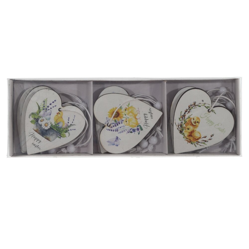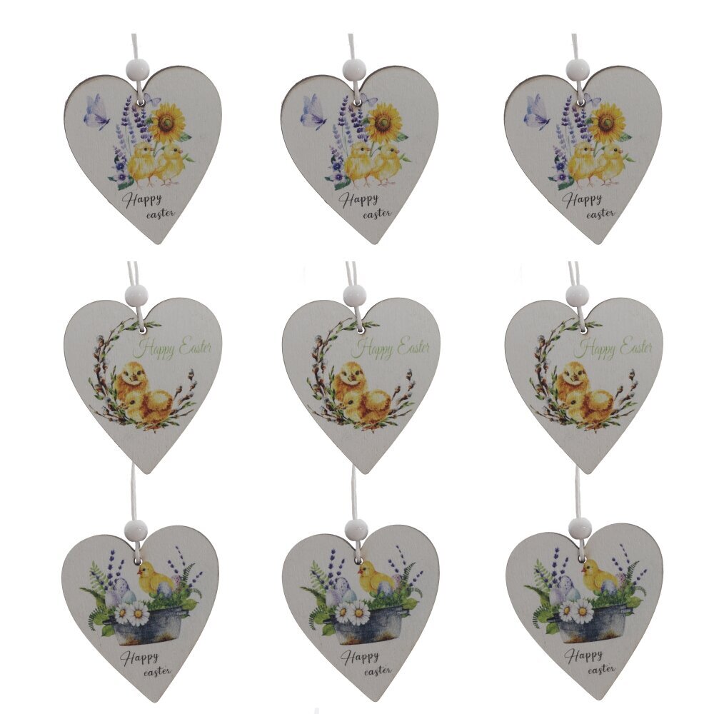 Пасхальный набор из 9 подвесных декоративных сердечек из дерева – нежное украшение для дома и праздничного стола. Каждое сердечко выполнено в светлых пастельных тонах и украшено акварельными рисунками: цыплята, весенние цветы, веточки вербы, бабочки и надписи «Happy Easter / Happy Easter». Подвески имеют белый шнурок с бусиной для удобного крепления на ветки, пасхальное дерево, окна, дверные ручки, корзины с яйцами или подарочную упаковку. Набор идеально подойдёт для оформления интерьера к Пасхе, создания уютной атмосферы, фотозоны или декора детского праздника. Деревянные сердечки лёгкие, прочные, многоразовые и хорошо сочетаются с другими пасхальными аксессуарами в природном и скандинавском стиле.