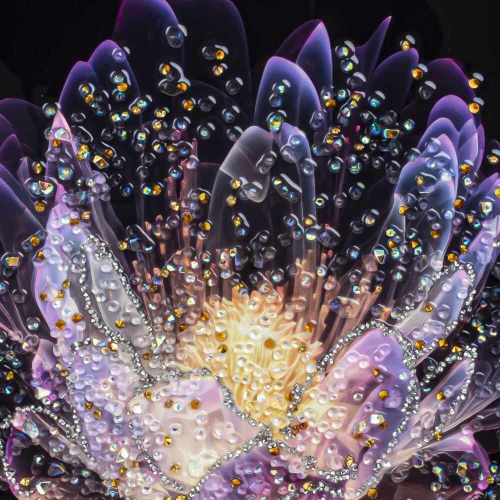 Невероятно стильное и современное панно с кристальным декором. Глубокие и благородные цвета придадут сочность и свежесть Вашему интерьеру.