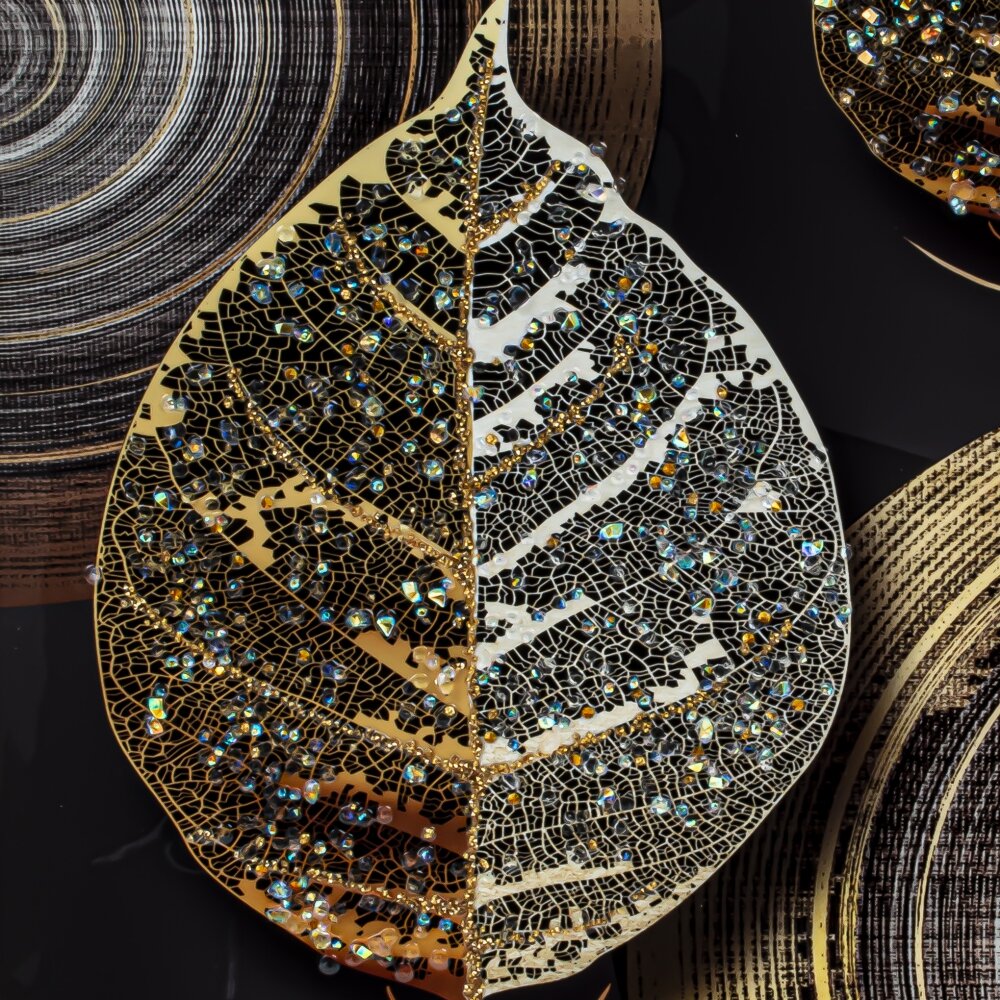 Невероятно стильное и современное панно с кристальным декором. Глубокие и благородные цвета придадут сочность и свежесть Вашему интерьеру.