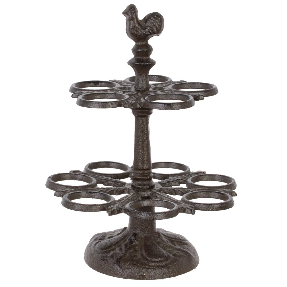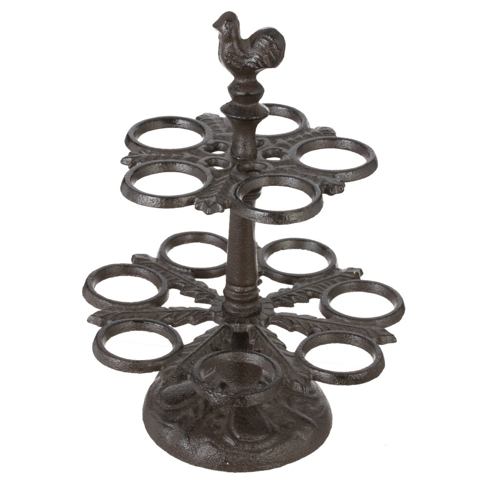 Элегантная пасхальная подставка для яиц из прочного чугуна — стильный и практичный элемент праздничного стола. Двухъярусная конструкция рассчитана на размещение 12-ти яиц, позволяя красиво оформить крашенки, сэкономив место. Круглые держатели надежно фиксируют яйца и предотвращают их скатывание. Фигурка петушка в верхней части подставки придает изделию особый декоративный шарм и подчеркивает пасхальную тематику. Чугун отличается устойчивостью и долговечностью, подставка не деформируется и надежно стоит на столе благодаря массивному основанию. Подойдет как для семейного торжества, так и в качестве оригинального подарка к Пасхе.