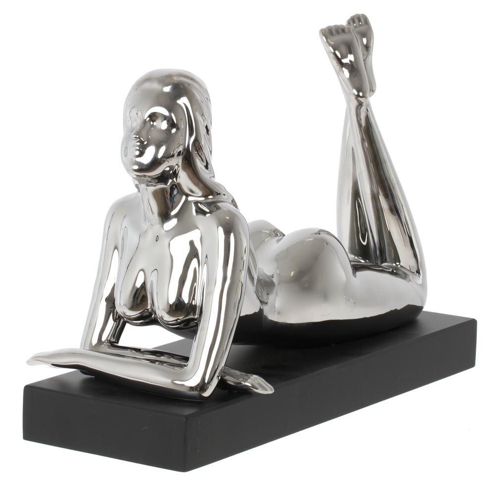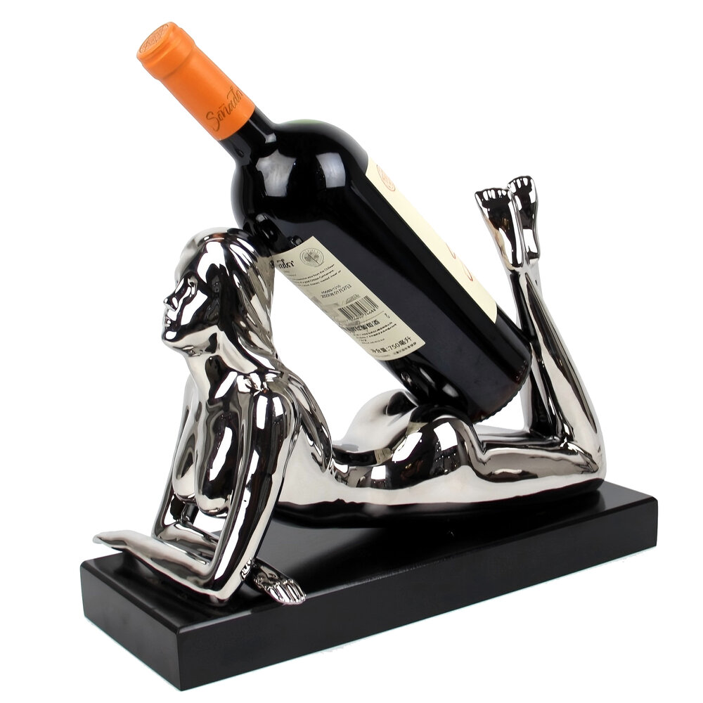 Элегантная подставка для бутылки в виде изящной женской фигуры станет эффектным акцентом вашего интерьера и украшением праздничного стола. Основание выполнено из прочного дерева благородного тёмного оттенка, на котором расположена скульптура из гладкого фарфора с зеркальным металлическим блеском. Бутылка укладывается вдоль изгибающейся спины фигуры и надёжно фиксируется за счёт продуманной формы. Изделие гармонично сочетается с современным, минималистичным и классическим декором, подойдёт для подачи вина или коллекционного алкоголя, а также как оригинальный подарок ценителям необычных аксессуаров для дома.