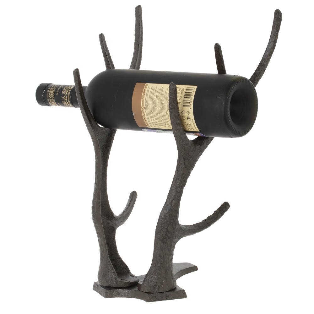 Элегантная подставка для 3?х бутылок, выполненная из прочного металла в виде изящных олених рогов. Оригинальная форма надежно фиксирует бутылки вина, шампанского или любого другого напитка, позволяя хранить их горизонтально и красиво демонстрировать на столе, барной стойке или в гостиной. Темное покрытие под старый металл подчеркивает благородный, слегка брутальный характер изделия и гармонично вписывается как в современный интерьер, так и в классический или охотничий стиль. Компактная устойчивая база обеспечивает надежную опору, не занимает много места и защищает поверхность от царапин. Идеальное решение для домашнего бара и эффектный подарок ценителям вина и нестандартного декора.