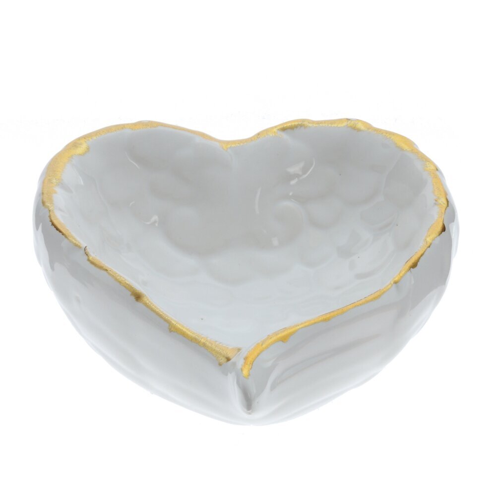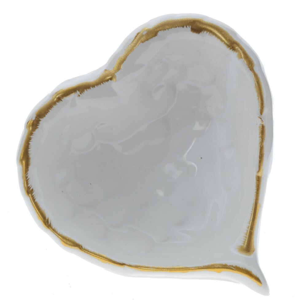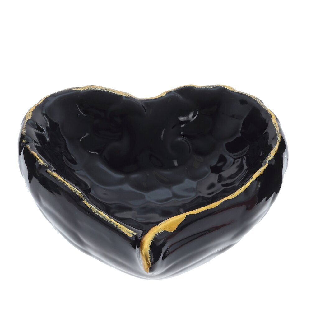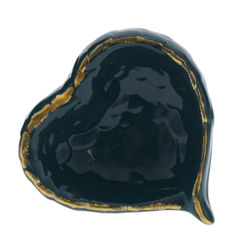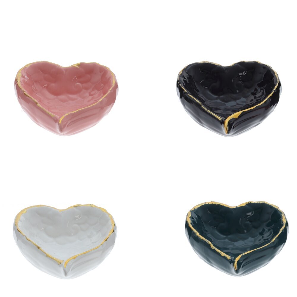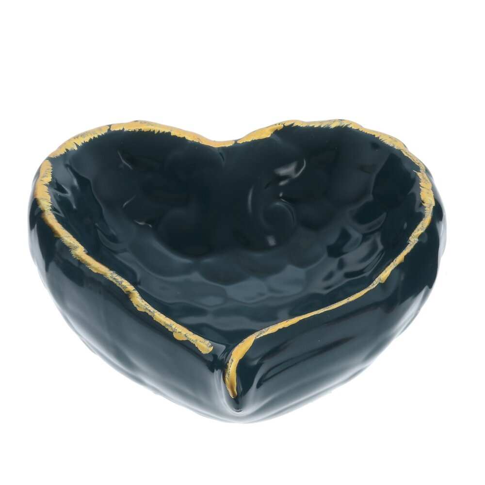 Подставка для мелочей из фарфора — это изысканный аксессуар для хранения украшений, ключей и других небольших предметов. Изделие выполнено в форме сердца, что придаёт ему особую очаровательность и романтичность. В коллекции представлено четыре варианта цвета: розовый, чёрный, белый и тёмно-зелёный. Каждый вариант декорирован изящной золотой каймой, подчеркивающей элегантность и оригинальность формы. Глянцевая поверхность создает приятные тактильные ощущения и красиво отражает свет. Такая подставка удачно впишется в любой интерьер спальни, ванной комнаты или прихожей, а также станет отличным подарком для близких. Фарфор отличается прочностью и долговечностью, что делает подставку практичной для ежедневного использования. Прекрасный выбор для тех, кто ценит стиль и уют в деталях.