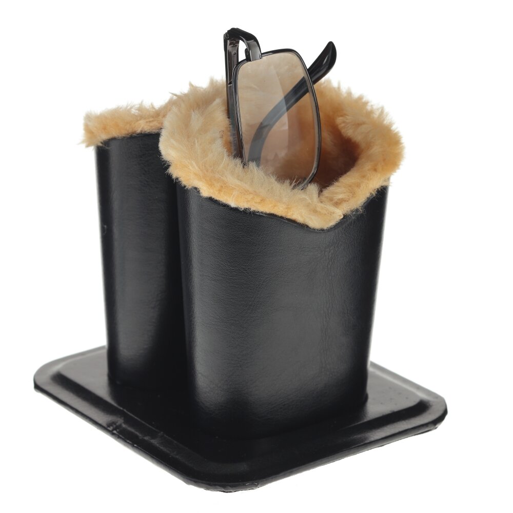 Подставка-футляр для очков. С ним вы всегда будете знать, где лежат ваши очки. Верхняя часть выполнена из эко-кожи, внутренняя - из искусственного меха, который обеспечивает защиту линз от любых повреждений и царапин. Данная конструкция очень удобна и экономит время на закрытие/открытие футляра. Стильное решение, которое не оставит вас и ваших гостей равнодушными.