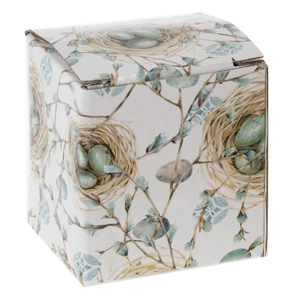 Подставка для яйца – стильный элемент пасхальной сервировки и уютных домашних завтраков. Изделие выполнено из фарфора с гладкой глянцевой глазурью, благодаря чему легко очищается и надолго сохраняет внешний вид. Нежный белый фон украшен акварельным рисунком фиолетовых листьев и небольшими контрастными точками, создающими весеннее настроение. Устойчивая ножка обеспечивает надёжное положение яйца, а гладкие края делают использование комфортным и безопасным. Такая подставка станет красивым акцентом праздничного стола и приятным подарком к Пасхе.