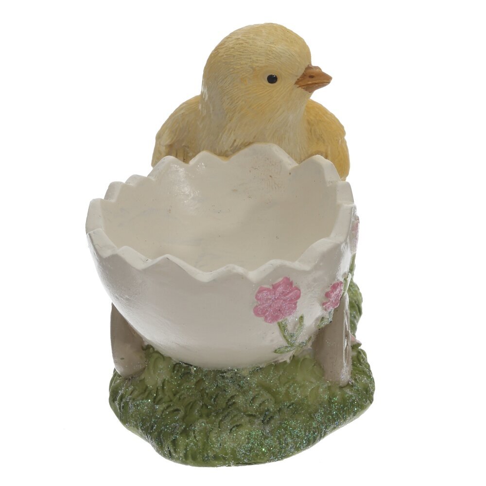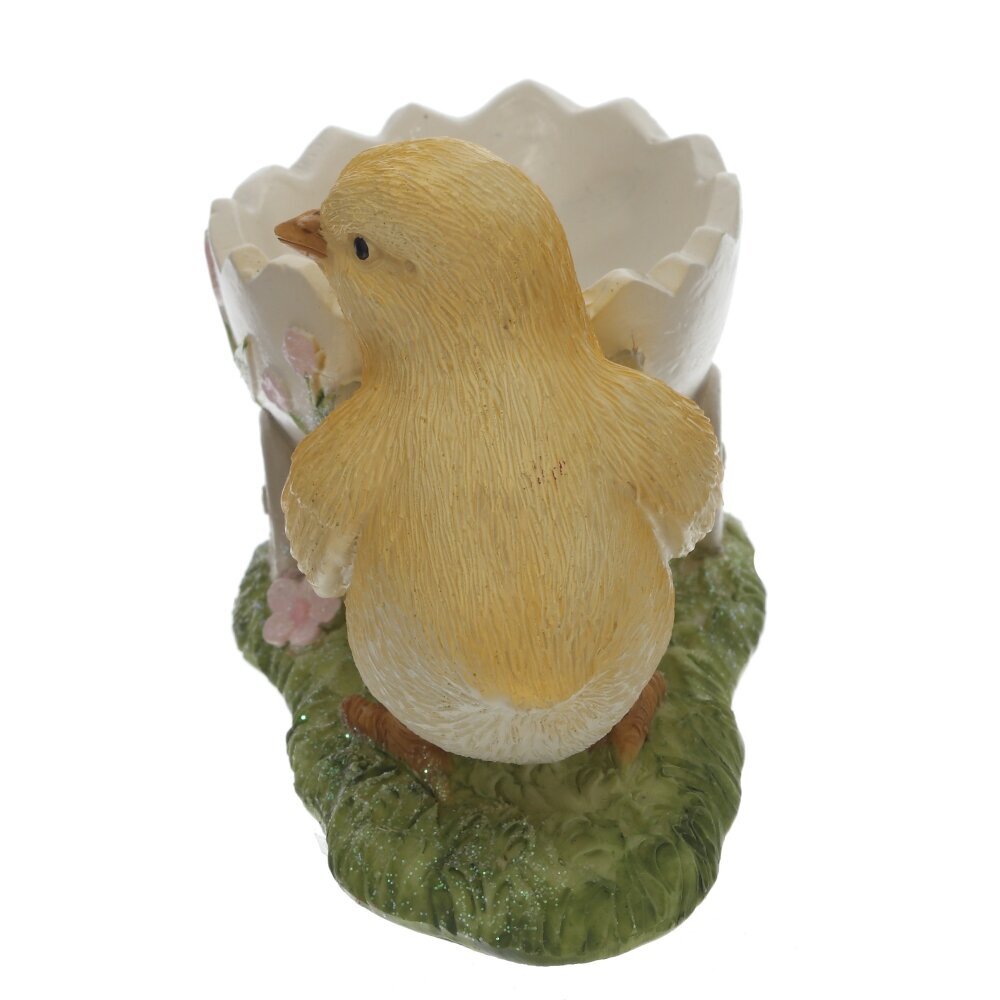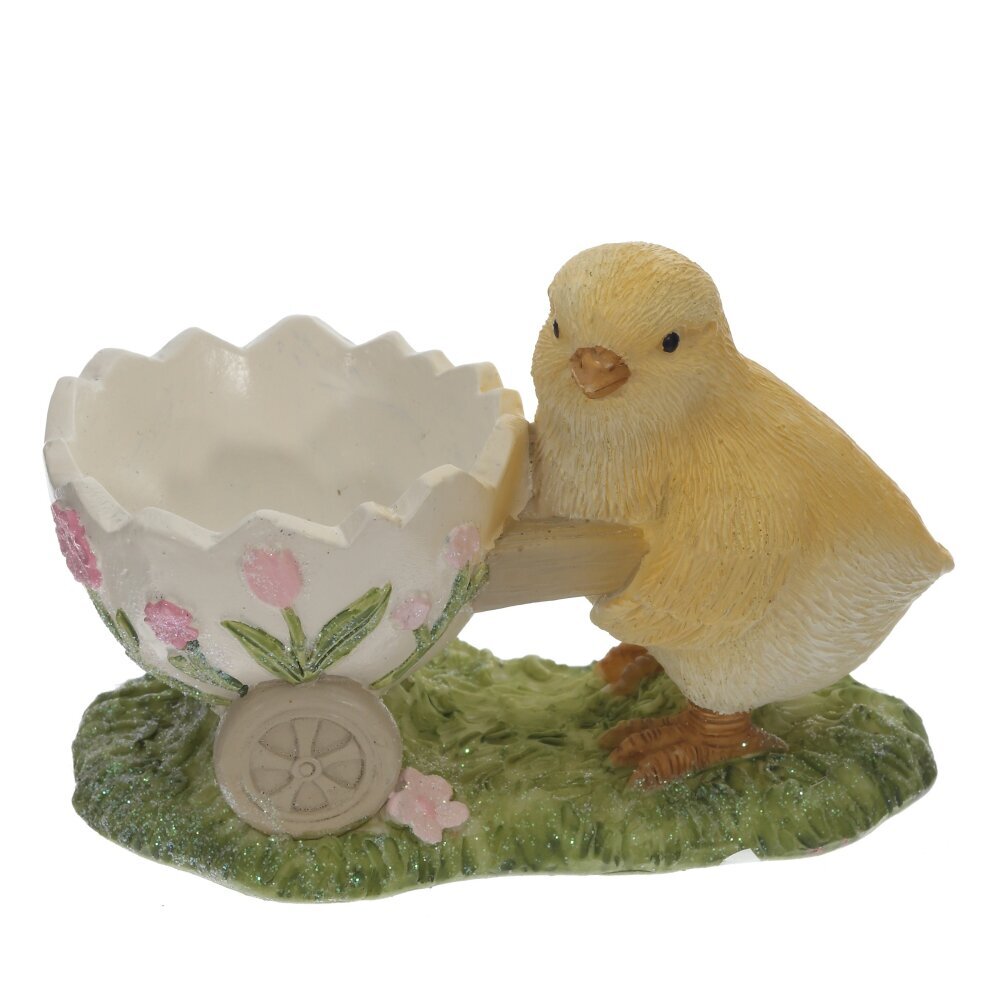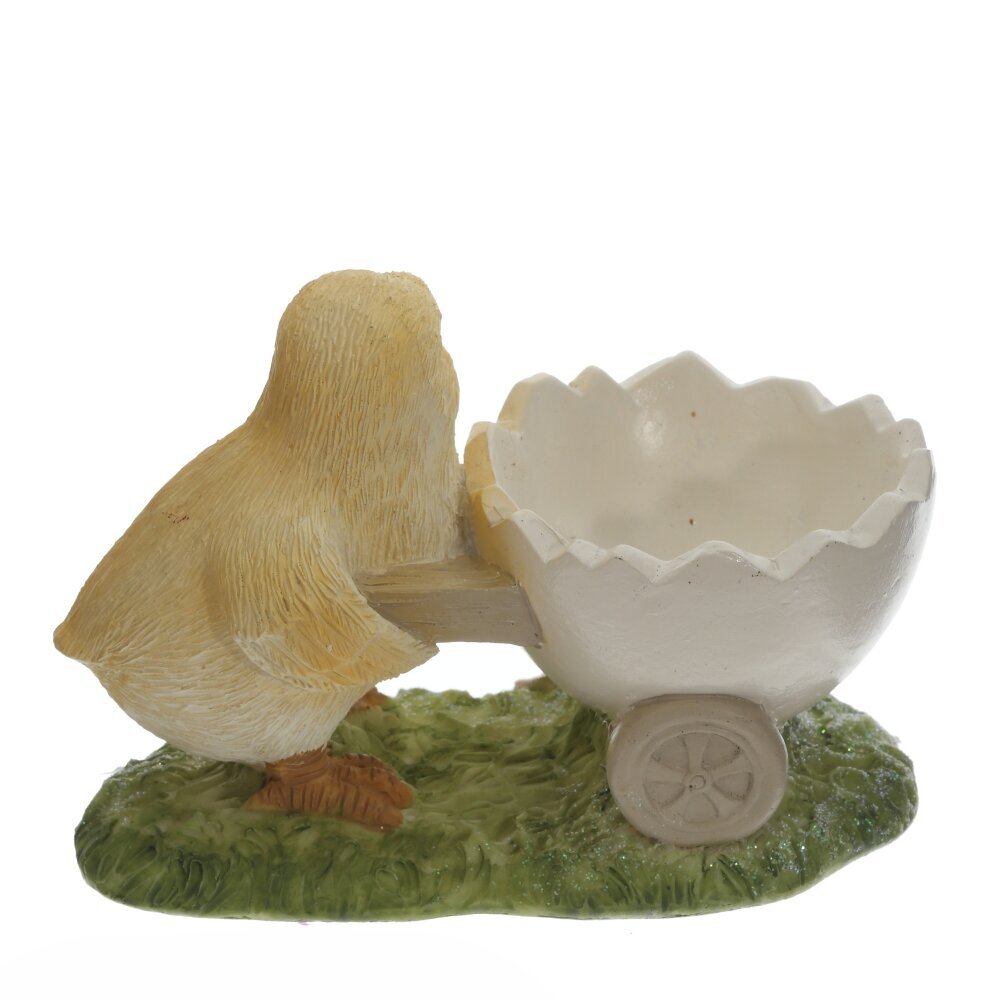 Пасхальная подставка для яйца «Цыплёнок» – милый праздничный акцент для сервировки стола и украшения интерьера. Фигурка выполнена из прочных полимерных материалов и изображает жёлтого цыплёнка, везущего тележку в виде расколотой яичной скорлупы. Чаша?скорлупка декорирована рельефными весенними цветами и рассчитана на одно куриное яйцо или небольшое шоколадное угощение. Яркие детали и аккуратная прорисовка делают подставку выразительным элементом пасхальной композиции, она подойдёт для домашнего использования, оформления праздников, фотозон и в качестве небольшого подарка к светлому празднику Пасхи.