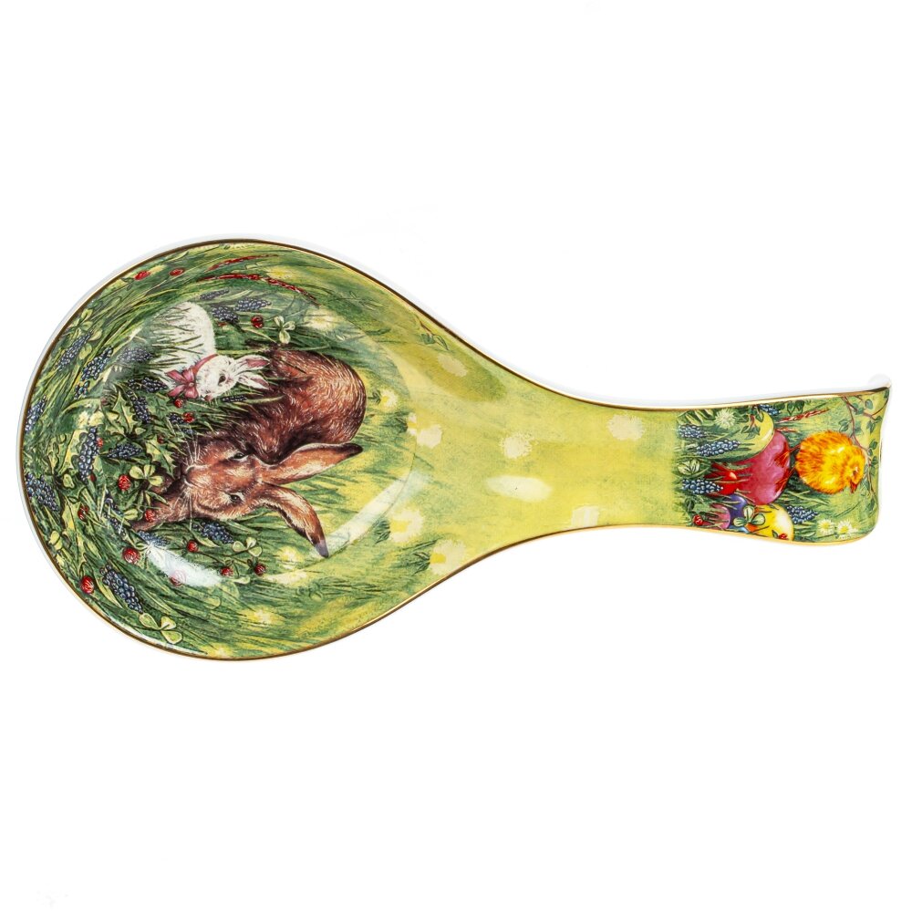 Фарфоровая подставка для ложки с пасхальным декором. Изделие может служить милым дополнением к Пасхальному подарку.