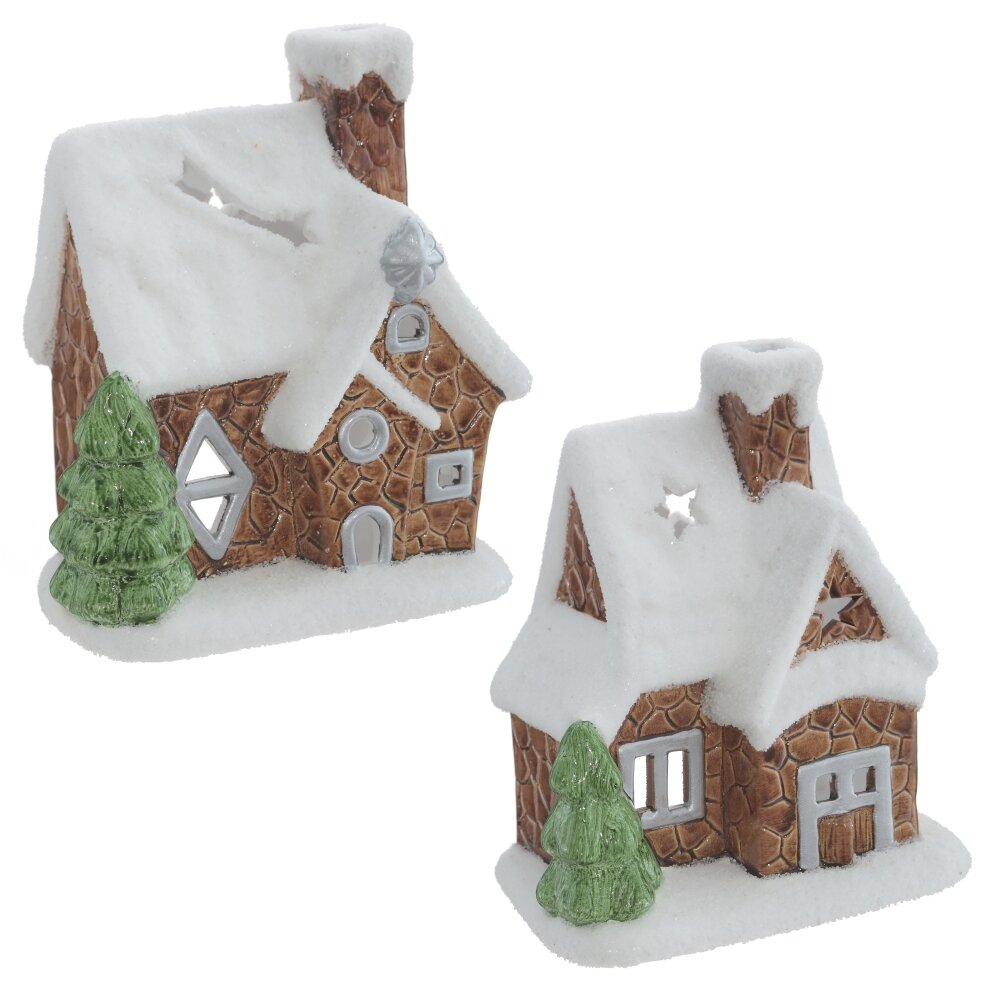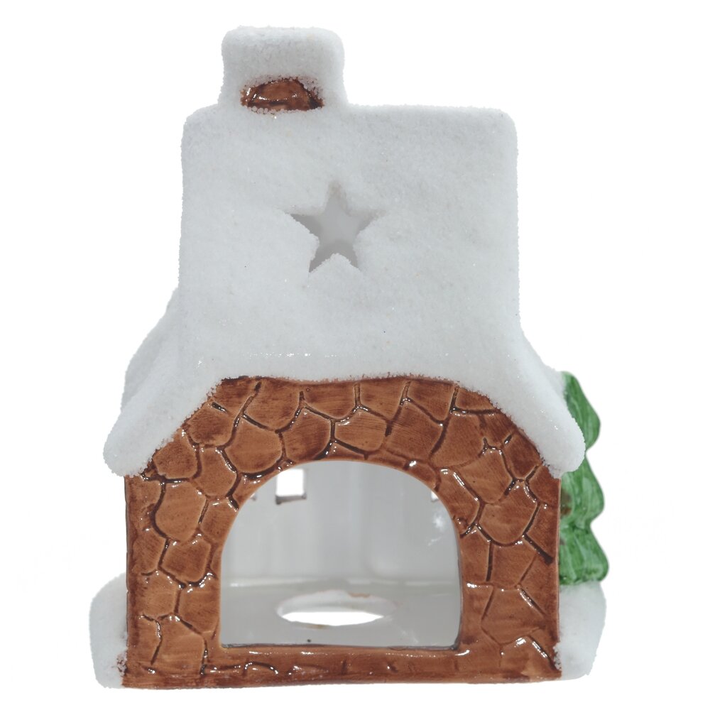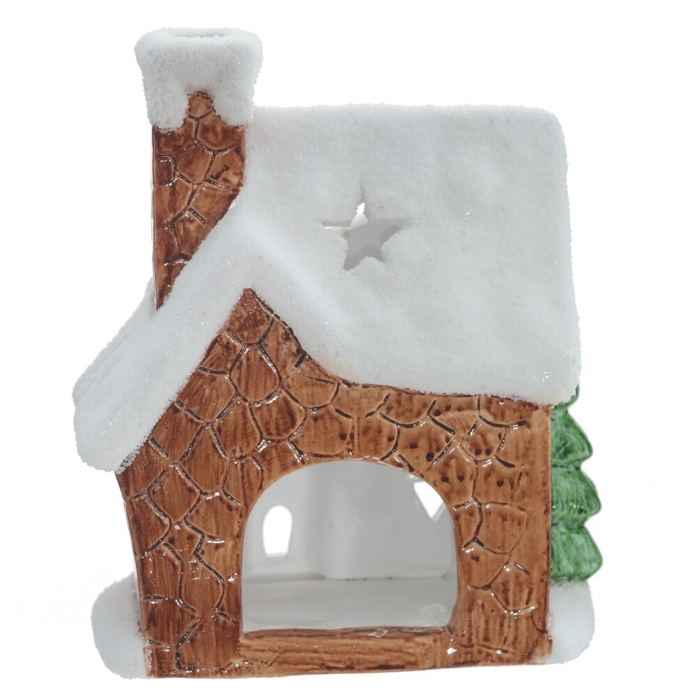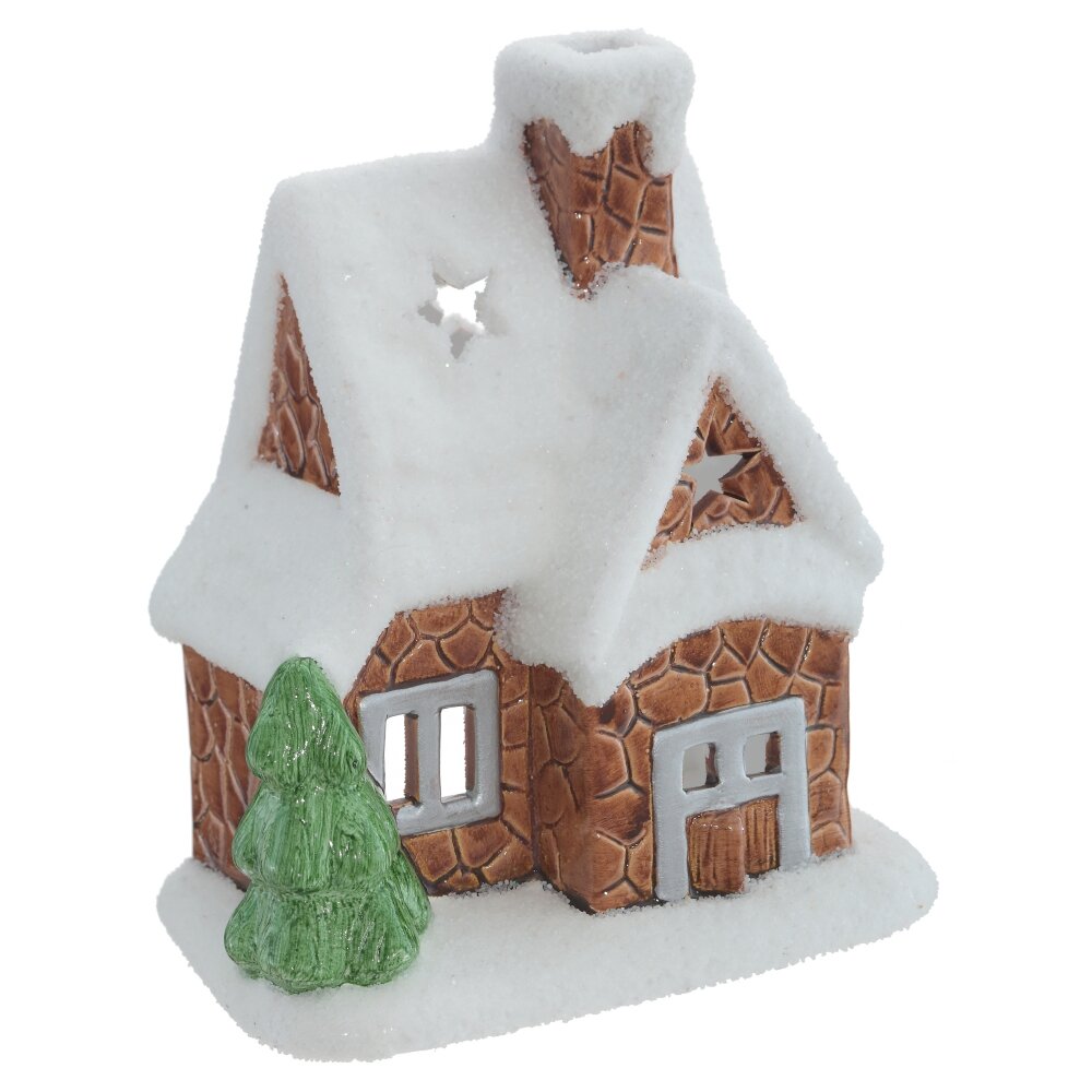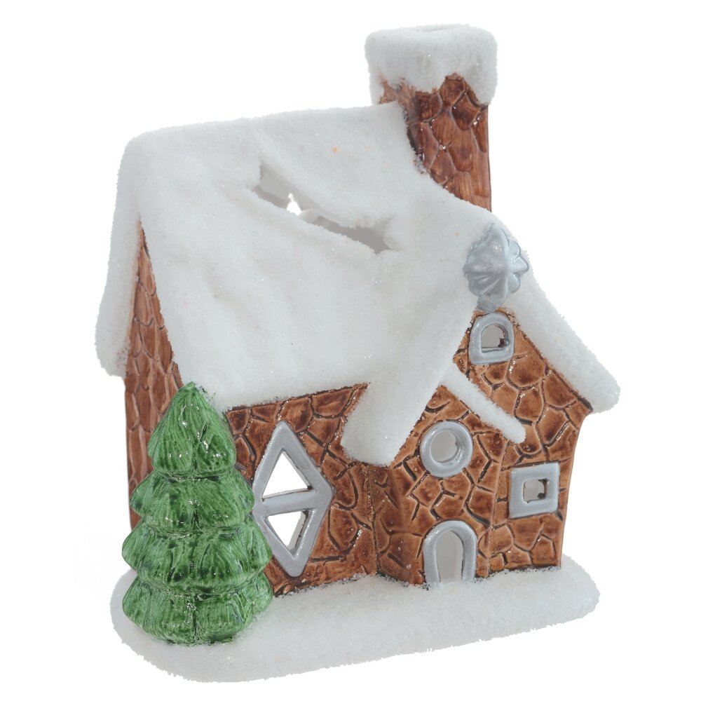 Новогодний подсвечник в виде сказочного домика с заснеженной крышей. Внутри размещается свеча, которая создаст мягкое и теплое освещение. Этот новогодний подсвечник может использоваться как самостоятельный элемент декора или в сочетании с другими украшениями. Представлен в двух вариантах. Для свечи, диаметром 6 см.