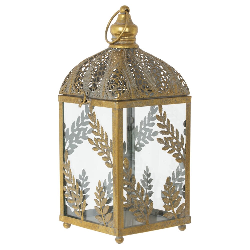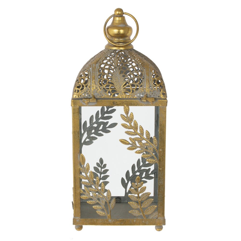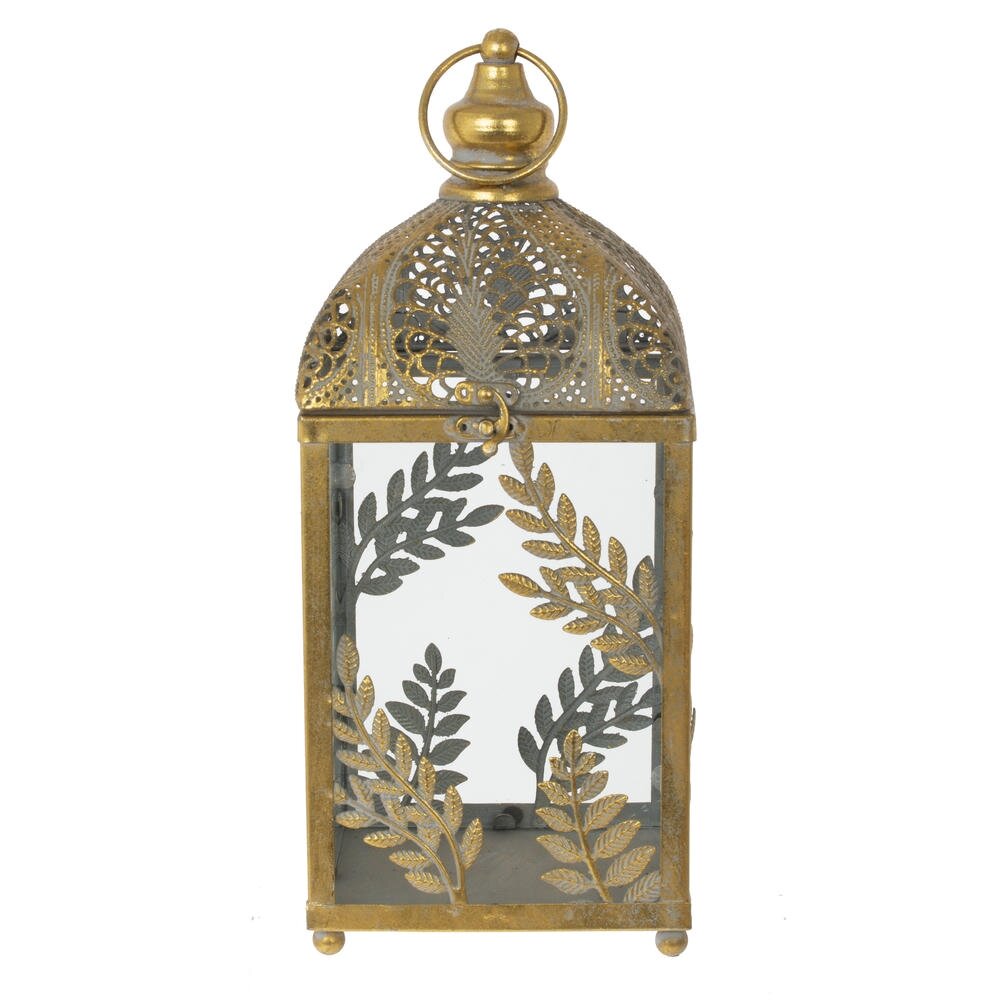 Элегантный подсвечник в виде декоративного фонаря, выполненный из прочного металла и прозрачного стекла. Корпус имеет изящное золотистое покрытие с ажурной верхней частью и растительным орнаментом в виде ветвей и листьев. Стеклянные стенки надежно защищают пламя свечи от сквозняков, позволяя наслаждаться мягким теплым светом. Подсвечник станет эффектным акцентом в интерьере гостиной, спальни или на террасе, создавая атмосферу уюта и романтики. Подходит для стандартных свечей и отлично сочетается как с классическим, так и с винтажным или бохо-стилем оформления.