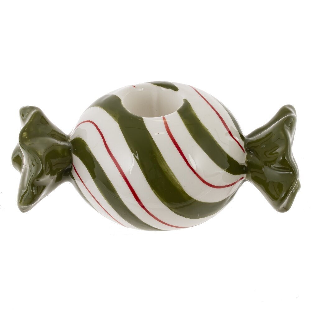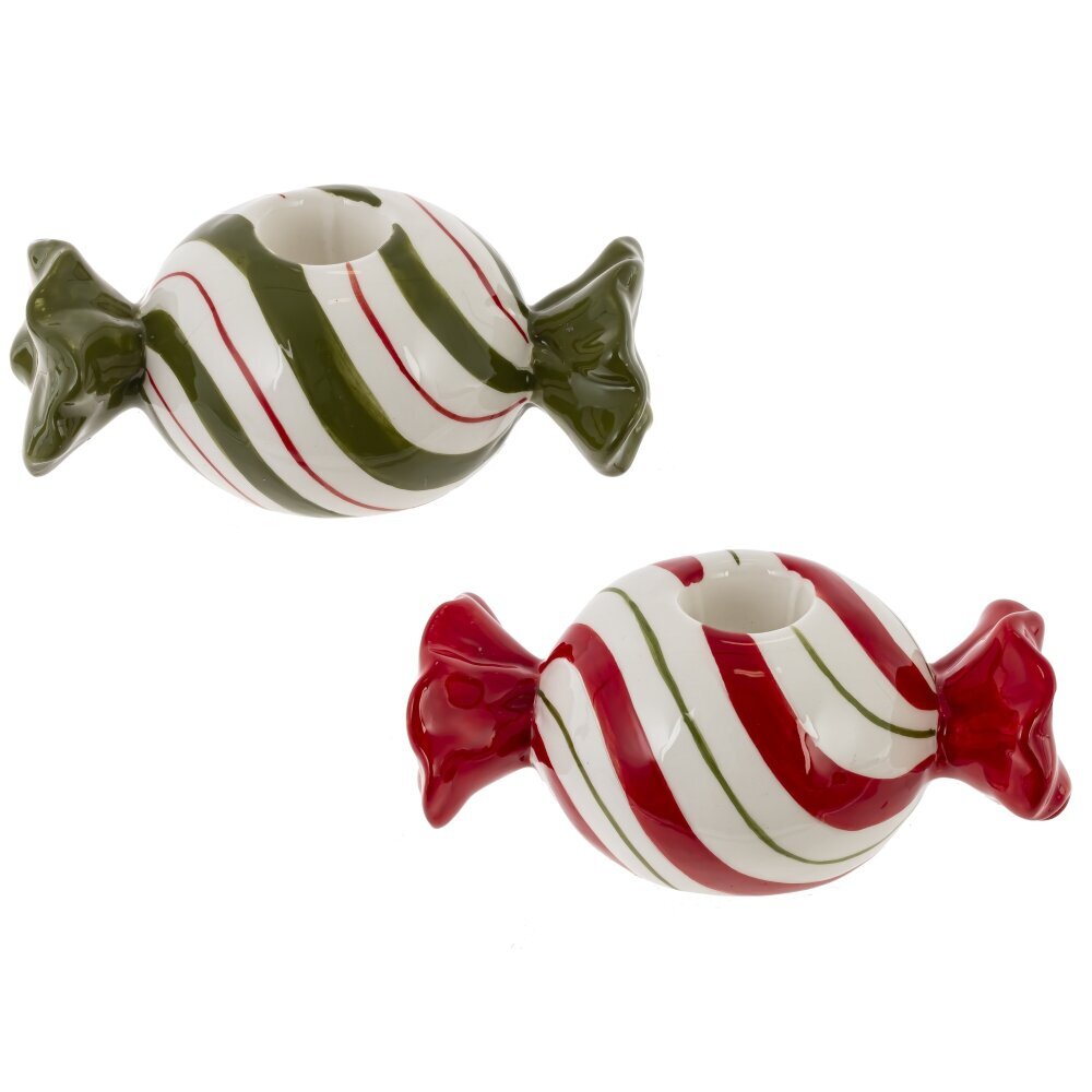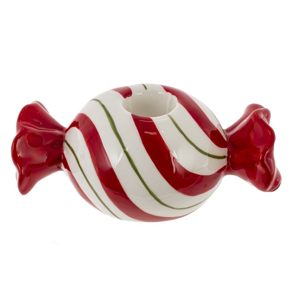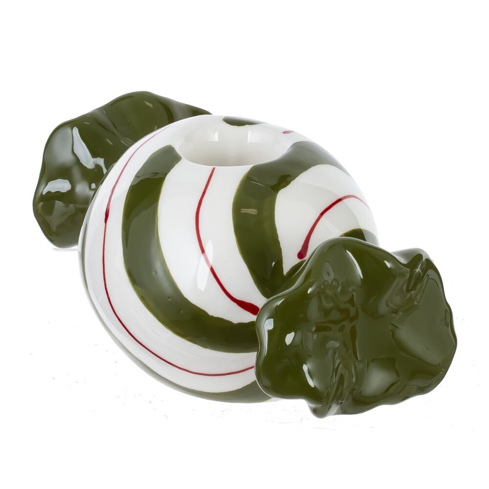 Подсвечник из керамики в форме конфеты — яркое и оригинальное украшение, которое привнесёт праздничное настроение в любой интерьер. Его дизайн сочетает насыщенные красный и зелёный цвета на чистом белом фоне, создавая классическую новогоднюю гамму, наполненную теплом и уютом. Изделие выполнено из качественной керамики с гладкой, блестящей поверхностью, которая красиво отражает свет пламени свечи. Такой подсвечник идеально подойдёт для создания атмосферы волшебства и уюта в зимние вечера, став стильным акцентом на праздничном столе или в украшении комнаты. Он отлично впишется в новогодний декор и станет замечательным подарком для близких, добавляя тепла и света в дом в праздничный сезон.