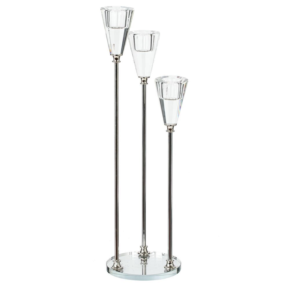 Стильный подсвечник из стекла – изящный акцент для современной гостиной, спальни или зоны отдыха. Конструкция с тремя держателями разной высоты создаёт динамичную композицию и красиво подчёркивает игру свечного света. Прозрачные стеклянные чаши и хромированные стойки на круглой стеклянной базе смотрятся легко и воздушно, гармонично сочетаясь как с классическим, так и с минималистичным интерьером. Идеален для тонких свечей, подходит для романтических вечеров, сервировки праздничного стола или эффектного декора в отеле, кафе и салоне красоты. Для свечей, диаметром 2 см.