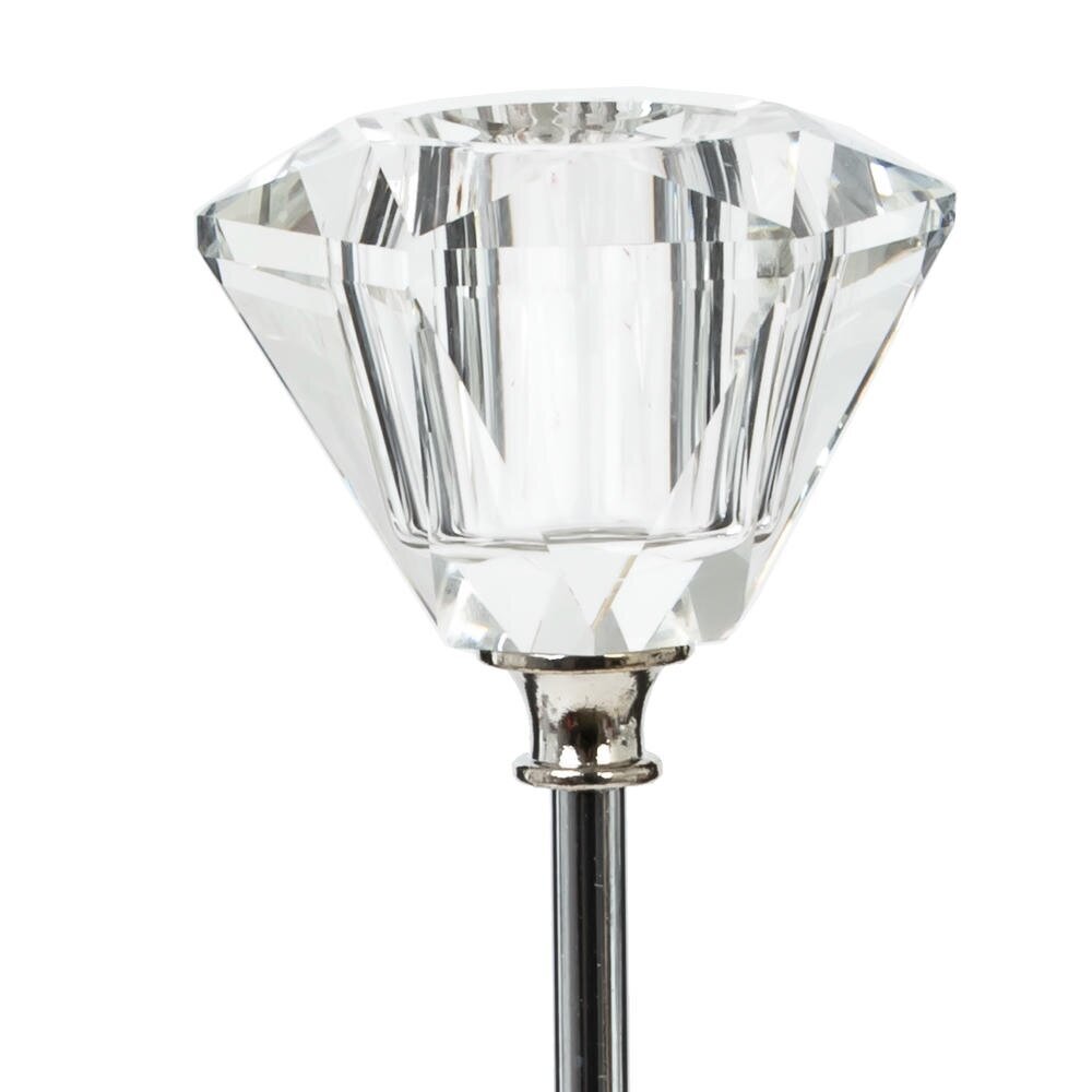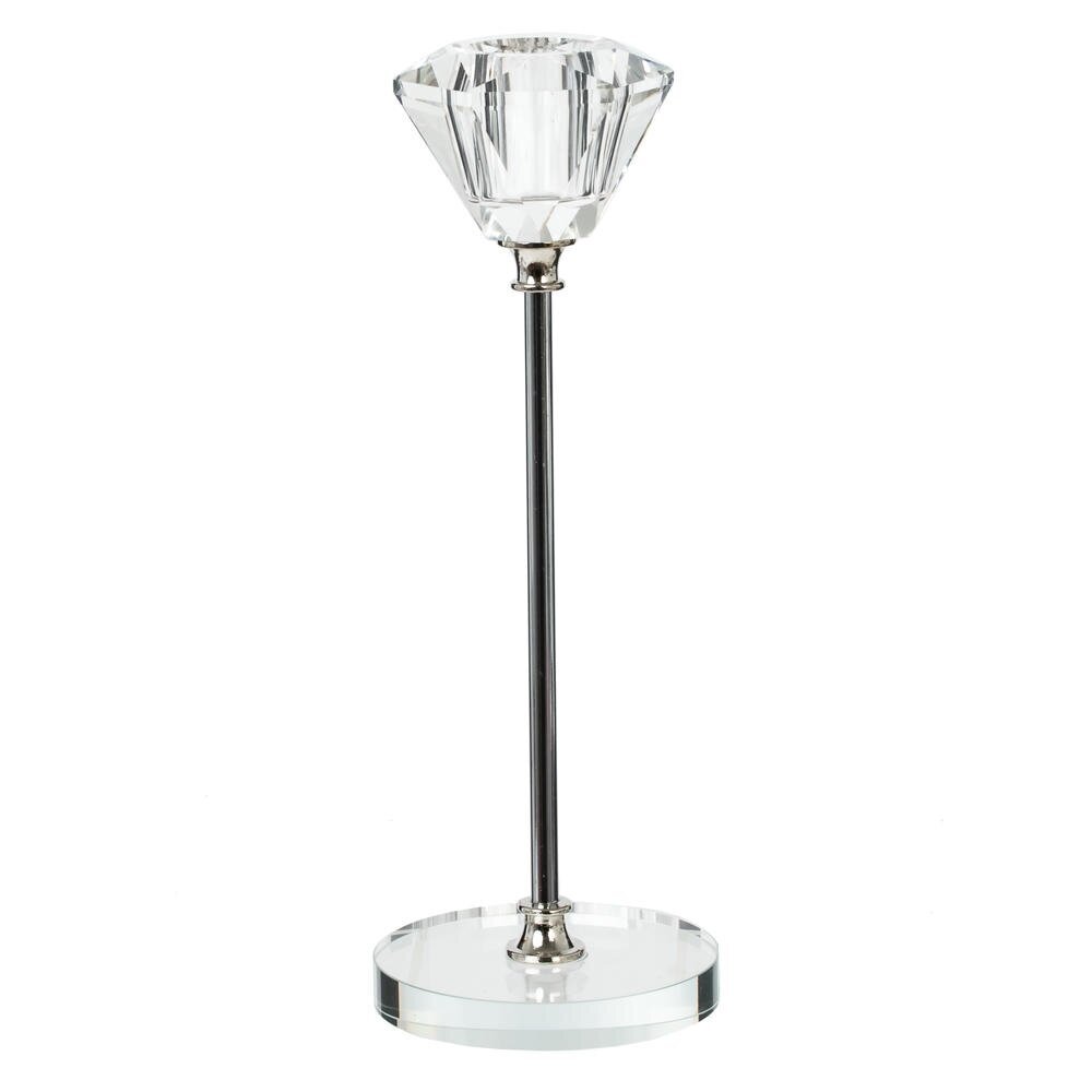 Элегантный подсвечник в современном стиле, выполненный из сочетания металла и прозрачного стекла. Стройная металлическая ножка устойчиво закреплена на круглой стеклянной основе, а сверху располагается изящный стеклянный держатель, напоминающий ограненный кристалл. При зажигании свечи свет мягко преломляется в гранях стекла, создавая красивую игру бликов и атмосферу уюта. Подсвечник станет эффектным акцентом на праздничном столе, каминной полке или прикроватной тумбе, гармонично дополняя как классический, так и современный интерьер. Идеален в качестве стильного подарка и для создания романтической обстановки дома. Для свечи, диаметром 2 см.