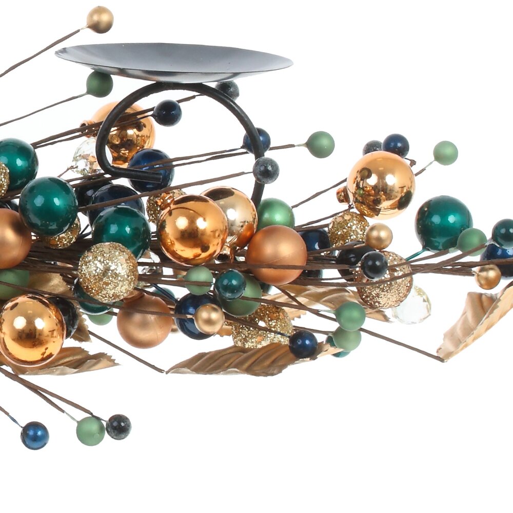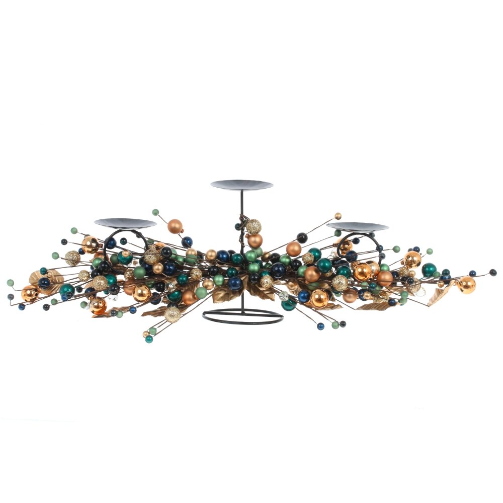 Изящный подсвечник на три свечи с мерцающими цветными шариками гармонично впишется в интерьер, создавая волшебную атмосферу.