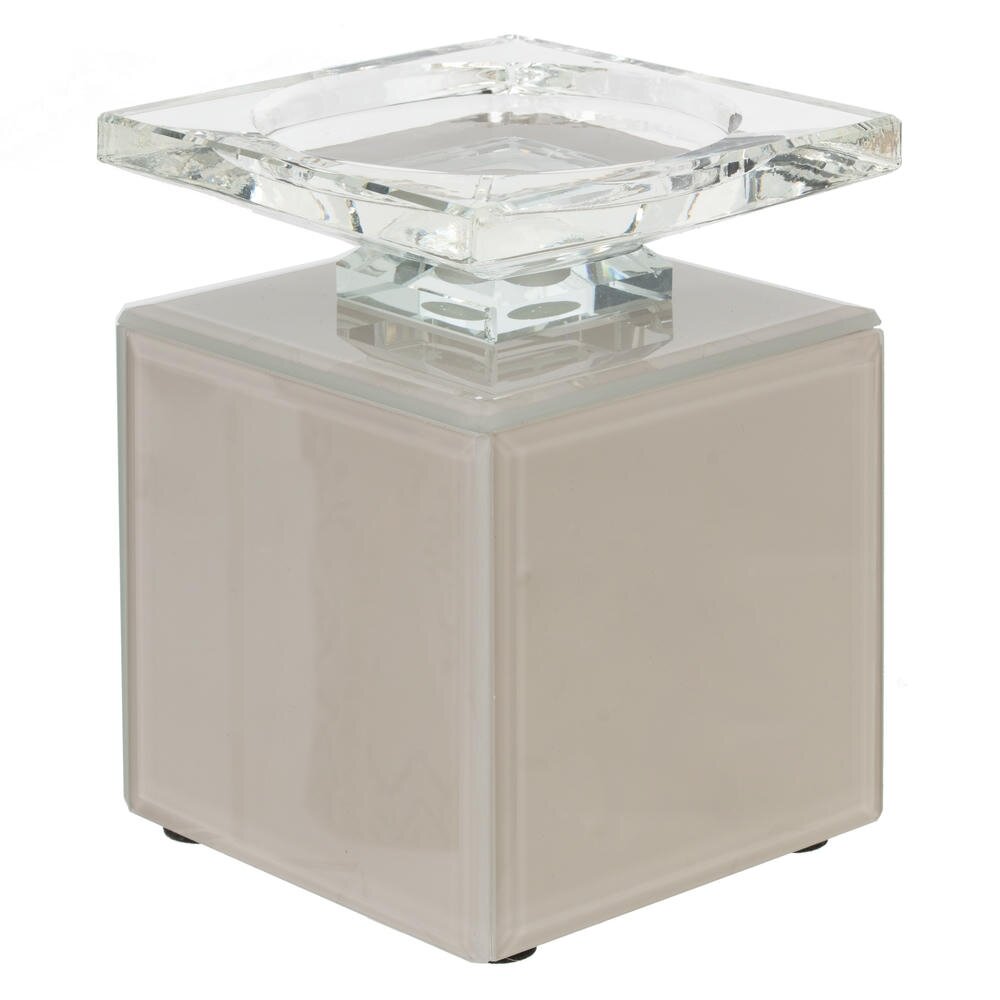 Стильный стеклянный подсвечник в современном минималистичном дизайне. Основание выполнено в виде строгого куба, а сверху расположена прозрачная квадратная площадка для свечи. Гладкие грани красиво отражают и преломляют свет пламени, создавая уютное свечение и интересные блики на поверхности стола. Подсвечник идеально подходит для чайных и небольших декоративных свечей, гармонично впишется в интерьер гостиной, спальни или офиса. Элегантный аксессуар для сервировки праздничного стола и оригинальный вариант подарка. Для свечи, диаметром 7,5 см
