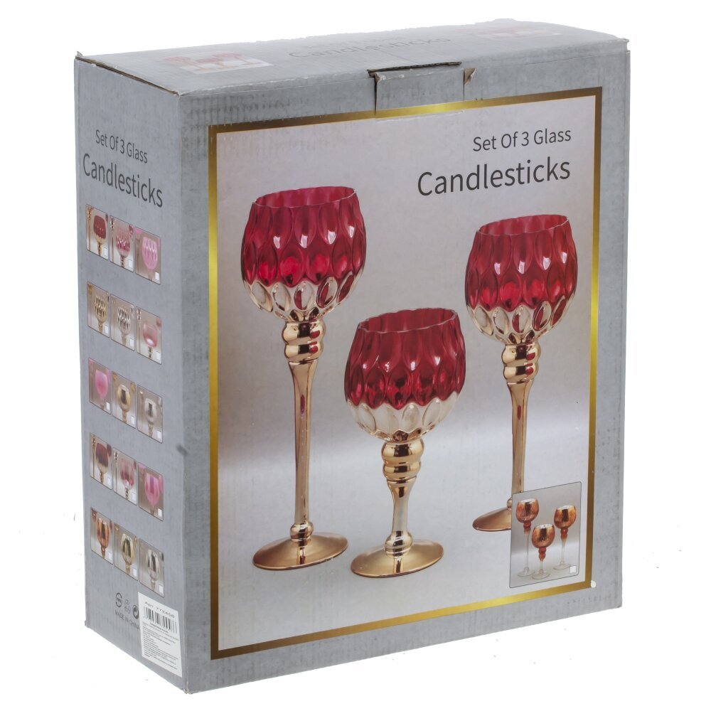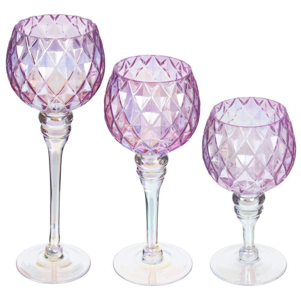 Набор из трех оригинальных стеклянных подсвечников на высоких ножках - прекрасный аксессуар для оформления праздничного стола. Он дополнит сервировку стола, подойдет для романтического вечера, или, просто украсит ваш дом.