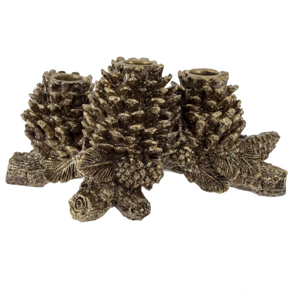 Новогодний подсвечник в форме трех шишек передает всю торжественность зимних праздников. Украшение будет уместно смотреться на праздничном столе, полочке в гостиной или спальне.