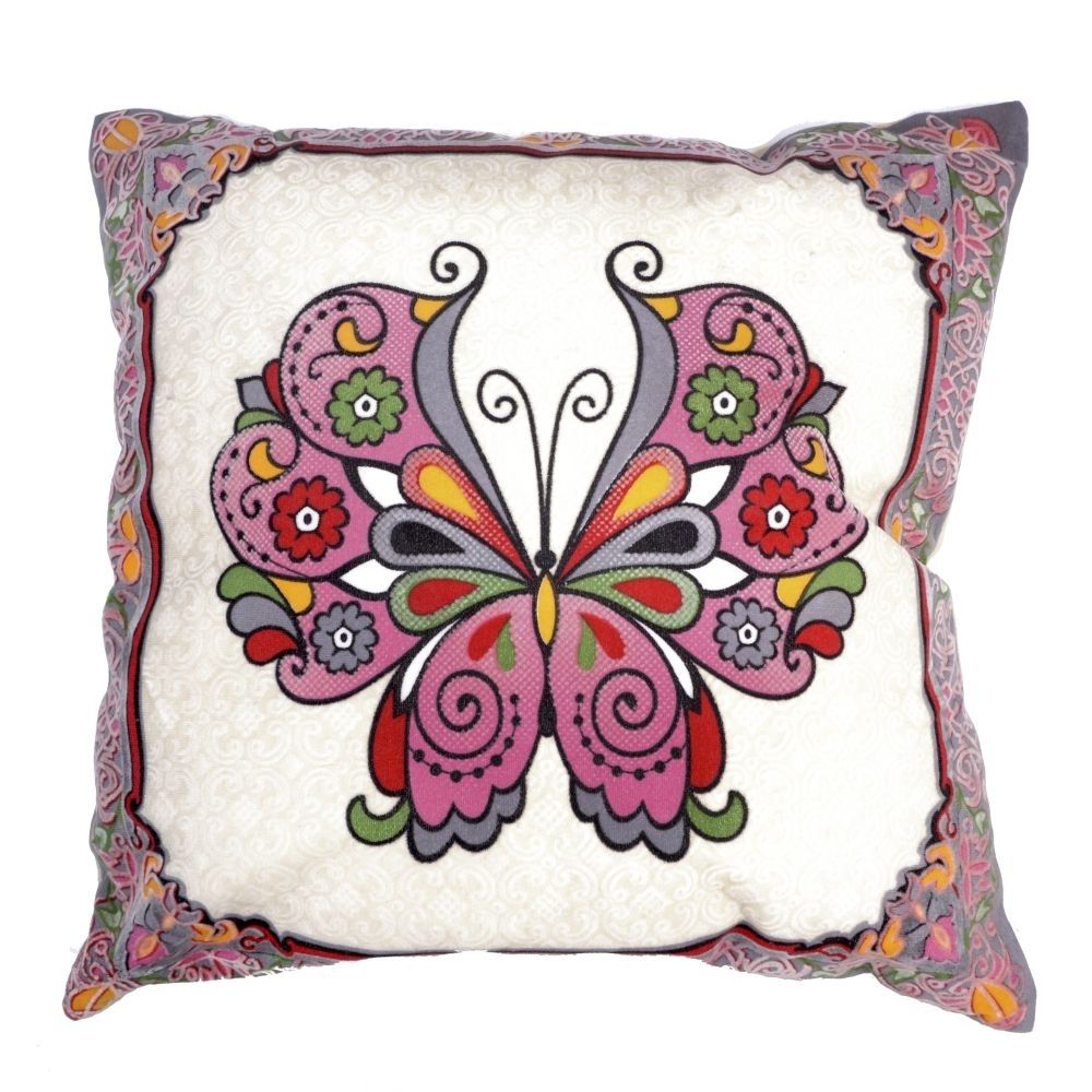 Декоративная подушка квадратной формы. Оригинальный дизайн и необычный принт с изображением бабочки украсит любой интерьер, создаст уют и настроение в доме. Чехол съемный на молнии. Наполнитель - полиэстер.