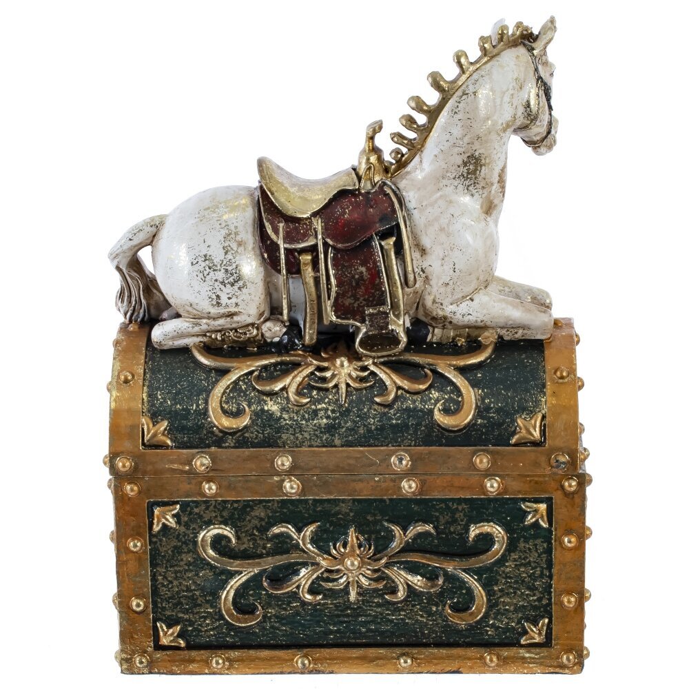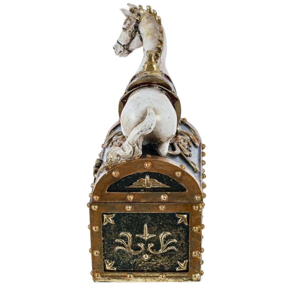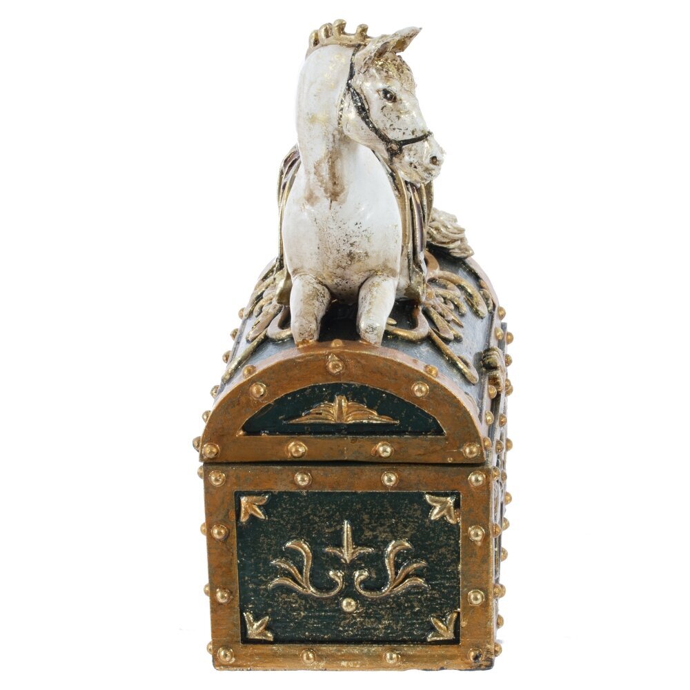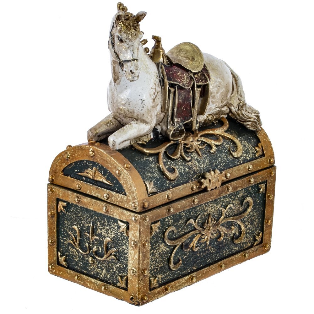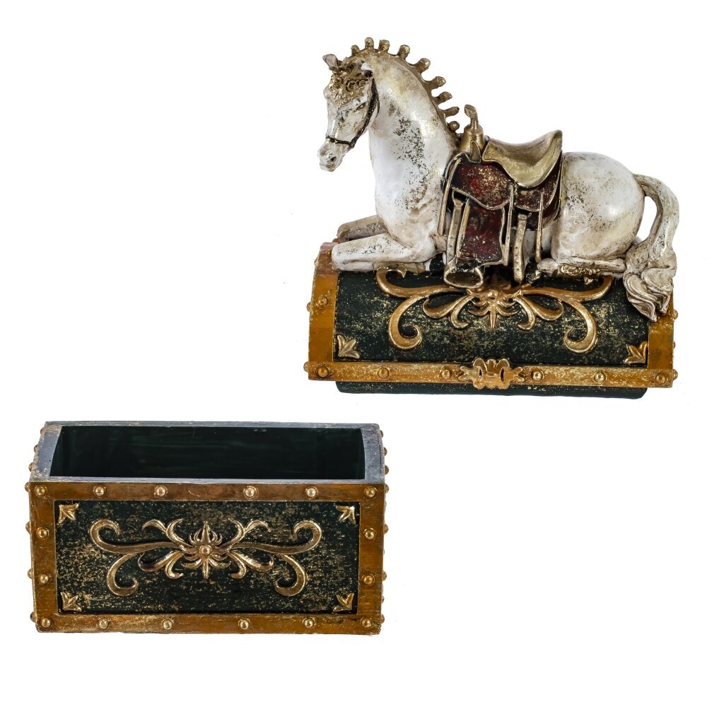 Декоративна шкатулка, декорированная фигуркой лошади на крышке — это изящный и стильный аксессуар, который украсит любой интерьер и добавит ему нотку благородства. Выполненный в благородном цвете, он отличается утончённым дизайном и гармоничными линиями, олицетворяющими грацию и силу этого благородного животного. Лошадь — символ энергии, стремления вперёд и удачи, а потому такой элемент декора может стать не только украшением, но и талисманом для дома. Это стильное изделие украсит полку, камин, туалетный столик или станет оригинальным подарком. Его можно использовать как самостоятельный элемент декора или в сочетании с другими аксессуарами в едином стиле. Это сочетание красоты и символизма будет радовать глаз каждый день.