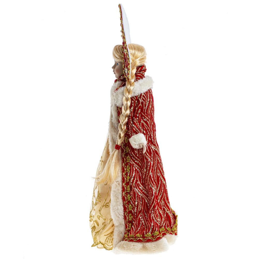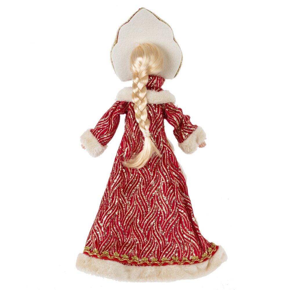 Снегурочка в роскошном красном наряде с меховой отделкой и кокошнике будет прекрасным подарком к Новому году. Ее можно поставить под елку, а так же использовать как милый подарок.