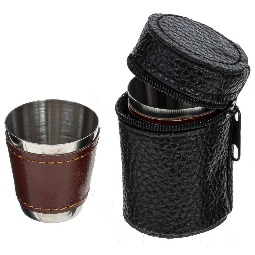 Стопки 30 мл изготовлены из коррозионностойкой стали. В набор входит 4 стопки и футляр, закрывающийся на молнию. Стопки многоразового использования. Благодаря тому, что стопки вкладываются друг в друга, они занимают мало места и их удобно брать с собой на пикник, рыбалку, охоту.
