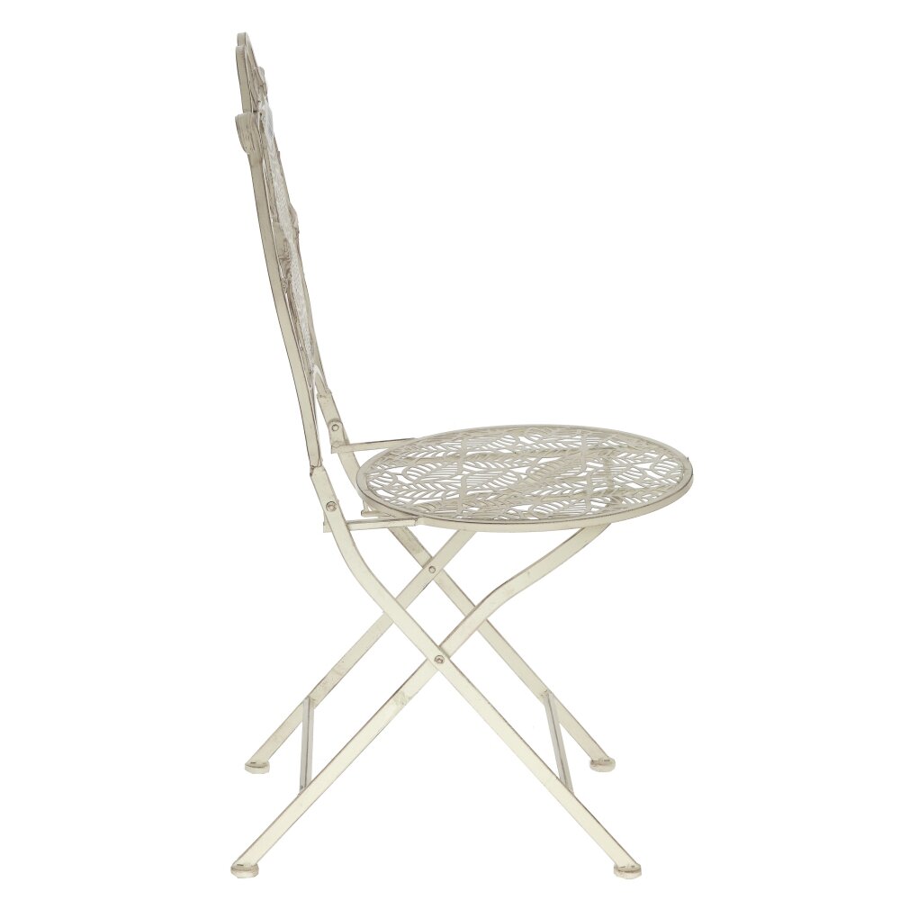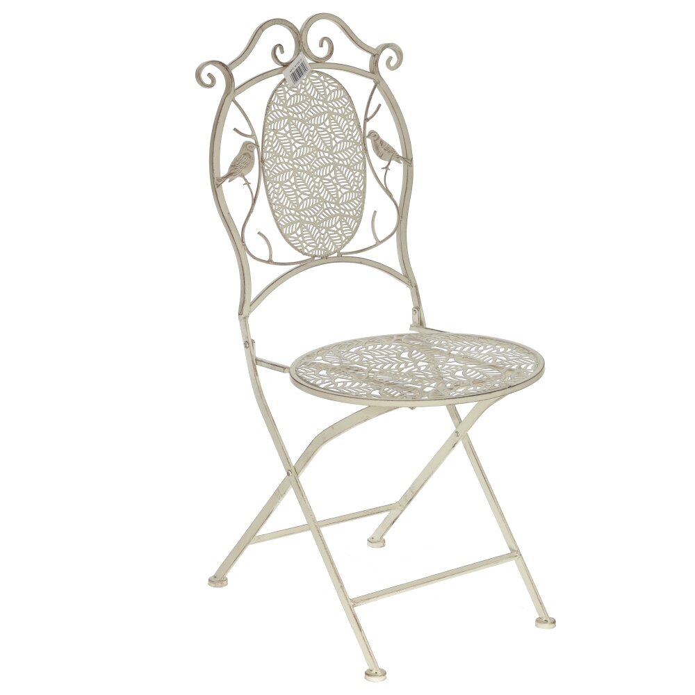 Складной металлический стул в изящном винтажном стиле — идеальное решение для сада, террасы, балкона или уютного кафе. Прочная металлическая рама украшена ажурным рисунком, а спинка дополнена декоративными завитками и фигурками птиц, создающими атмосферу уюта и романтики. Сиденье с перфорацией обеспечивает комфорт и не накапливает влагу, что особенно удобно при использовании на улице. Конструкция легко складывается, позволяя без труда переносить и компактно хранить стул, экономя место. Надёжное покрытие защищает металл от коррозии и облегчает уход: достаточно протереть влажной тканью. Стул прекрасно сочетается с коваными и плетёными элементами декора и станет стильным акцентом в любом интерьере или садовой зоне отдыха.