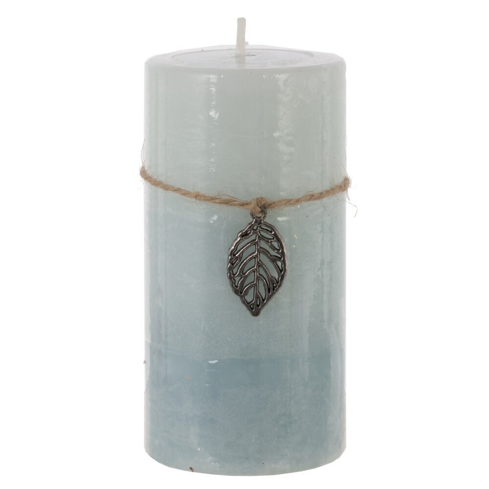 Элегантная цилиндрическая свеча диаметром 5 см в мягком светло?голубом оттенке. Вокруг корпуса завязан тонкий джутовый шнур с подвеской?листом из темного металла — аккуратный акцент в стиле эко и рустик. Такая свеча гармонично впишется в гостиную, спальню или ванную, подойдет для сервировки стола, фотосессий и уютных вечеров. Ее нейтральный цвет легко сочетается с деревом, керамикой и стеклом. Используйте на жаропрочной подставке и не оставляйте без присмотра. Отличный вариант для подарка и домашнего декора.