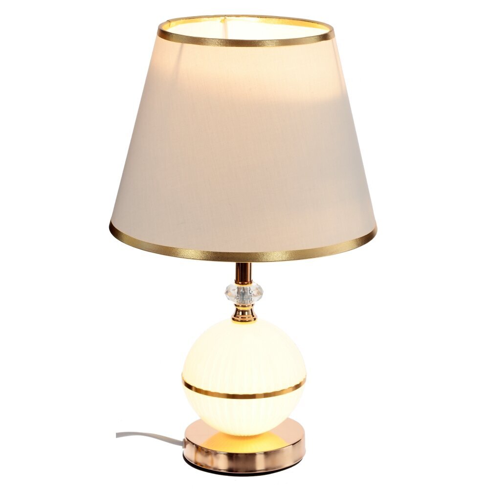 Этот светильник с абажуром не только обеспечивает достаточное освещение, но и станет стильным элементом декора в вашем помещении. Его элегантный дизайн в сочетании с качественными материалами создает уютную и гармоничную атмосферу. Разместите его на столе, комоде или прикроватном столике, и вы сможете наслаждаться его приятным и мягким светом в течение долгого времени. Основание выполнено из металла и стекла. Он оснащен цоколем Е27, шнуром длиной 1,1 метра.