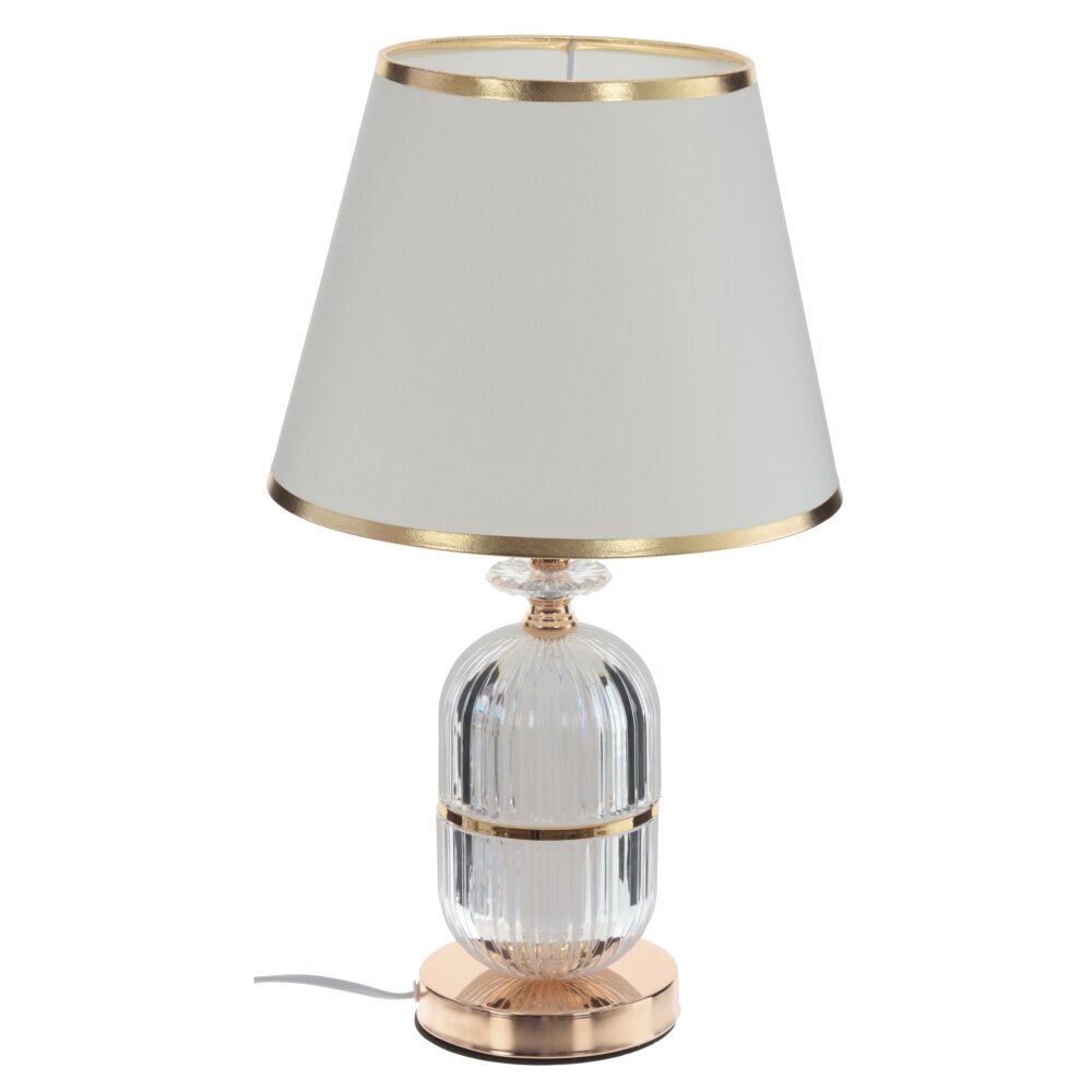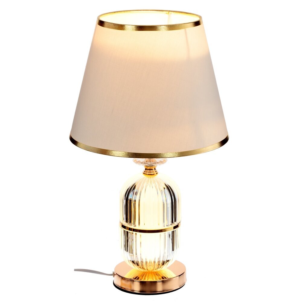 Этот светильник с абажуром не только обеспечивает достаточное освещение, но и станет стильным элементом декора в вашем помещении. Его элегантный дизайн в сочетании с качественными материалами создает уютную и гармоничную атмосферу. Разместите его на столе, комоде или прикроватном столике, и вы сможете наслаждаться его приятным и мягким светом в течение долгого времени. Основание выполнено из металла и стекла. Он оснащен цоколем Е27, шнуром длиной 1,1 метра.